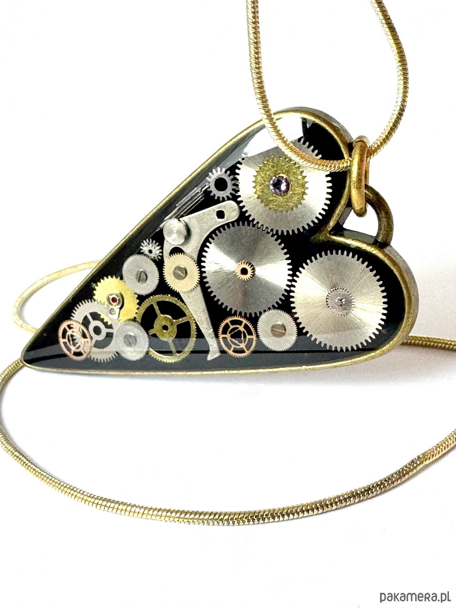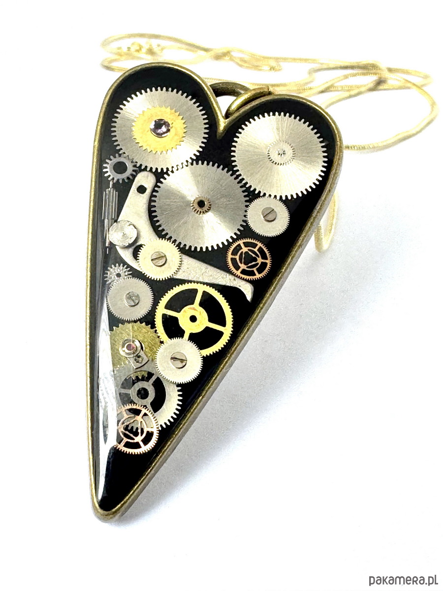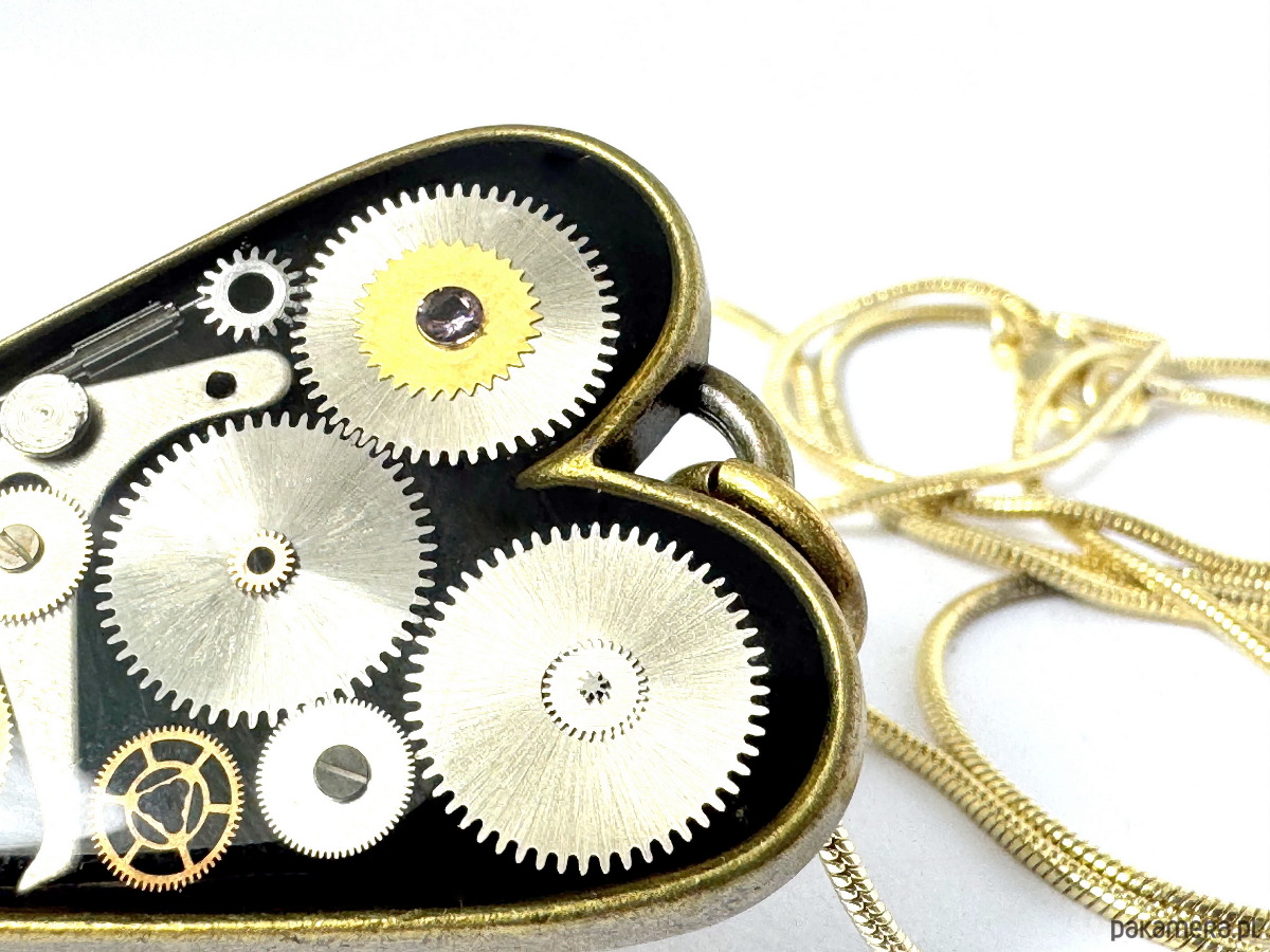 Unikalny wisiorek, wykonany w bardzo eleganckiej formie. Trybiki zegarka ułożone w wyjątkowy i niepowtarzalny wzór. Bardzo ciekawa i nietuzinkowa ozdoba.
