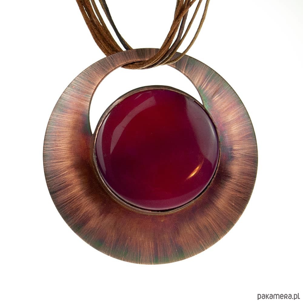 Wisiory z tej kolekcji zostały wykonane ręcznie z miedzi i agatu o średnicy ok. 40-45 mm. W procesie tworzenia wisiora blacha jest polerowana, matowiona, a następnie malowana oksydą i przecierana, dzięki czemu powstaje niepowtarzalny efekt kolorystyczny. Blacha otaczająca agat jest lekko wypukła oraz zabezpieczona warstwą ochronną. Miedziane koło, którego centralnym elementem jest jedyny w swoim rodzaju agat, ma średnicę ok 7 cm.