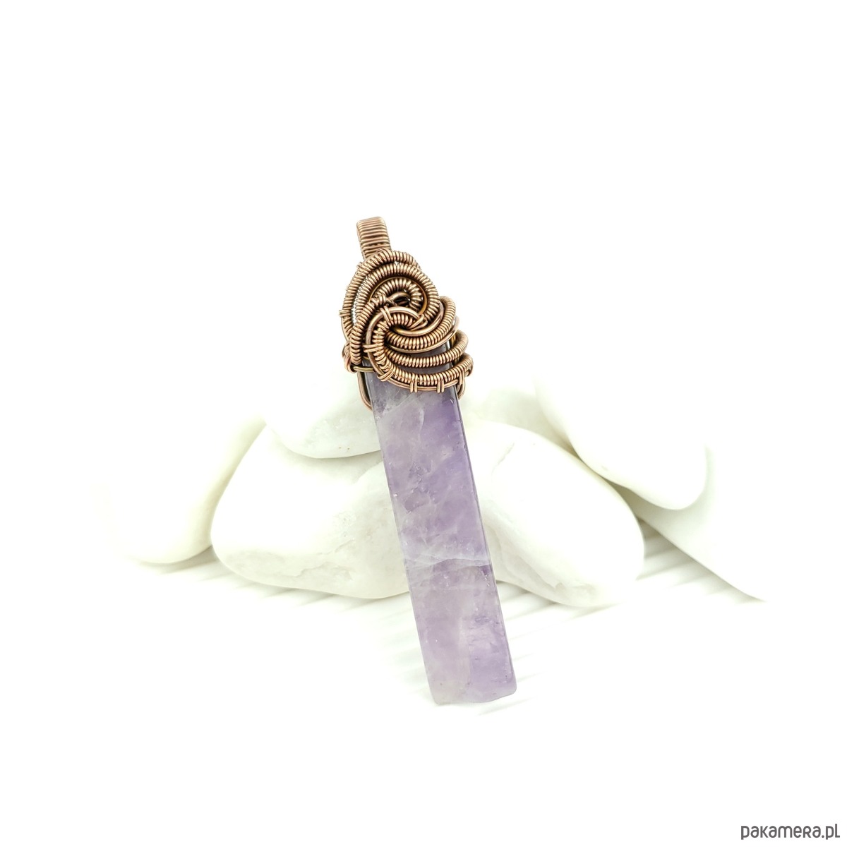 Materiał: ametyst, miedziany drut jubilerski.