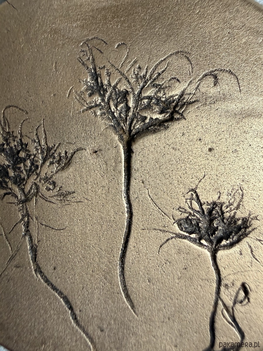 Naturalną cechą tej biżuterii są widoczne ślady ręcznej pracy i procesu tworzenia: od odciśnięcia roślin w glince brązu, przez wypał w wysokiej temperaturze, aż po ręczne polerowanie wypalonego metalu. To one nadają biżuterii jej unikatowy charakter.