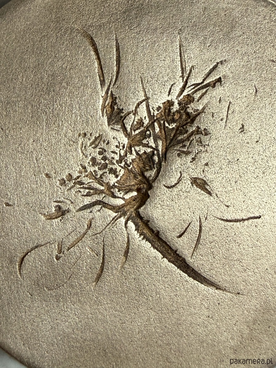 Naturalną cechą tej biżuterii są widoczne ślady ręcznej pracy i procesu tworzenia: od odciśnięcia roślin w glince brązu, przez wypał w wysokiej temperaturze, aż po ręczne polerowanie wypalonego metalu. To one nadają biżuterii jej unikatowy charakter.
