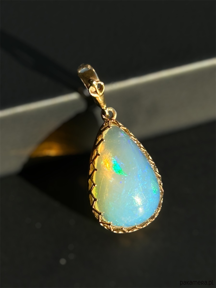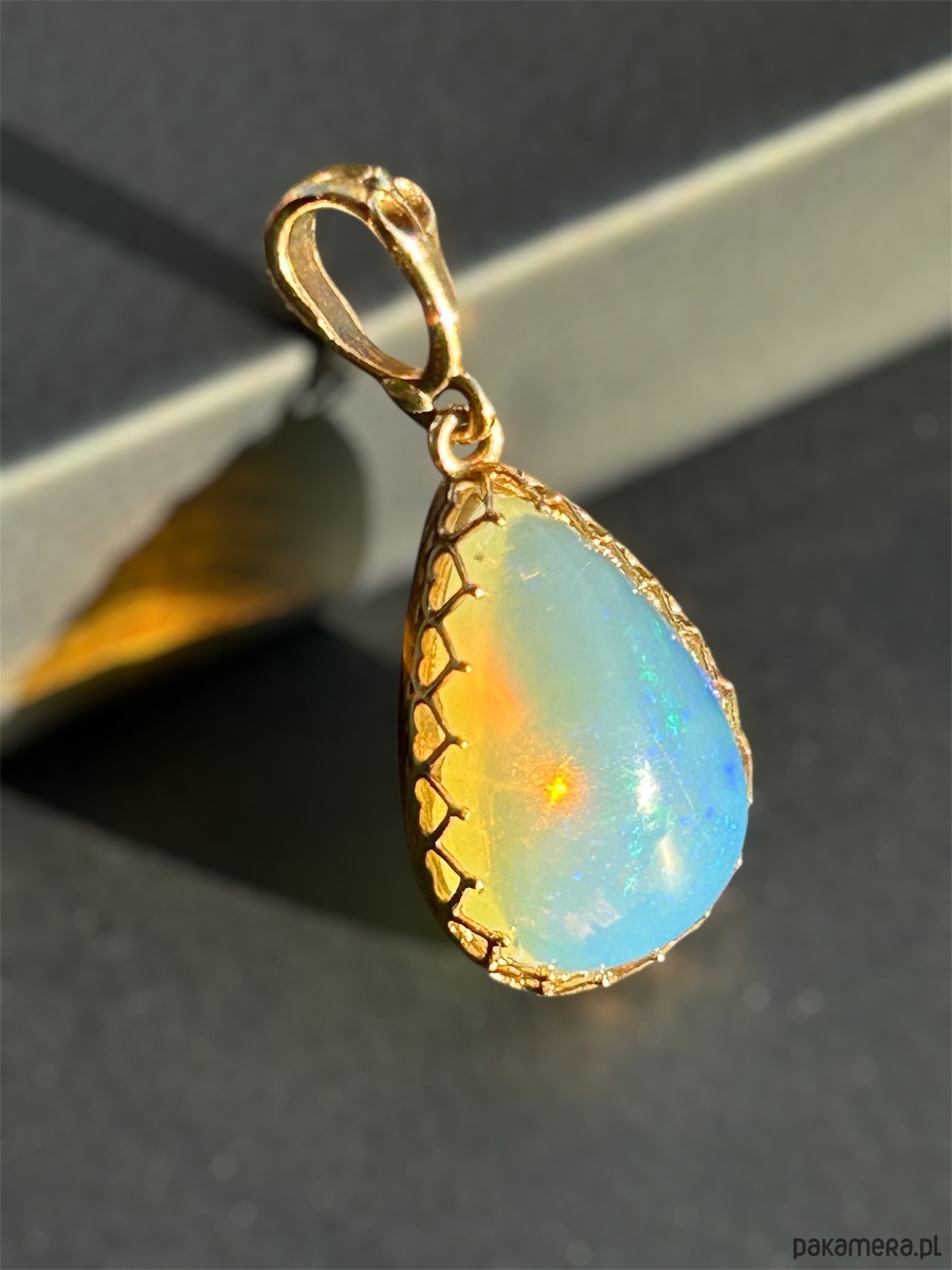 Wisior z opalem etiopskim w złotej oprawie