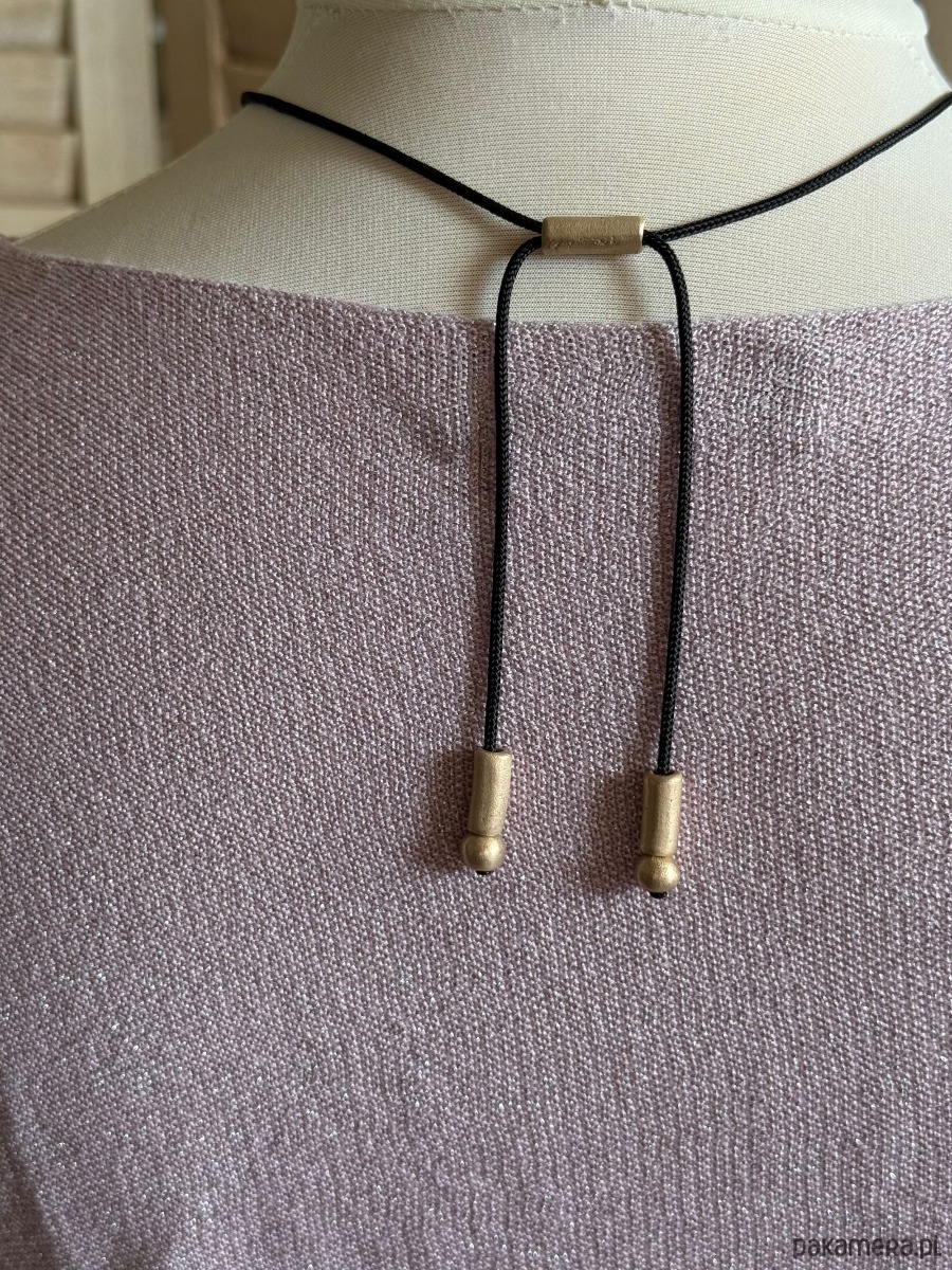 Wisior zawieszony jest na brązowym, regulowanym sznurku, zakończonym elementami z brązu.