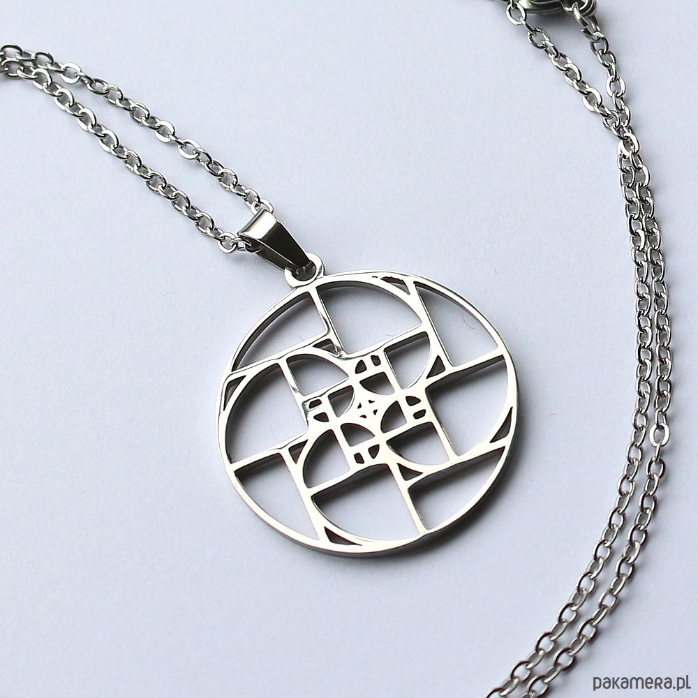 Energetyczny wisior ze spiralą Fibonacciego wykonany ręcznie ze stali szlachetnej.