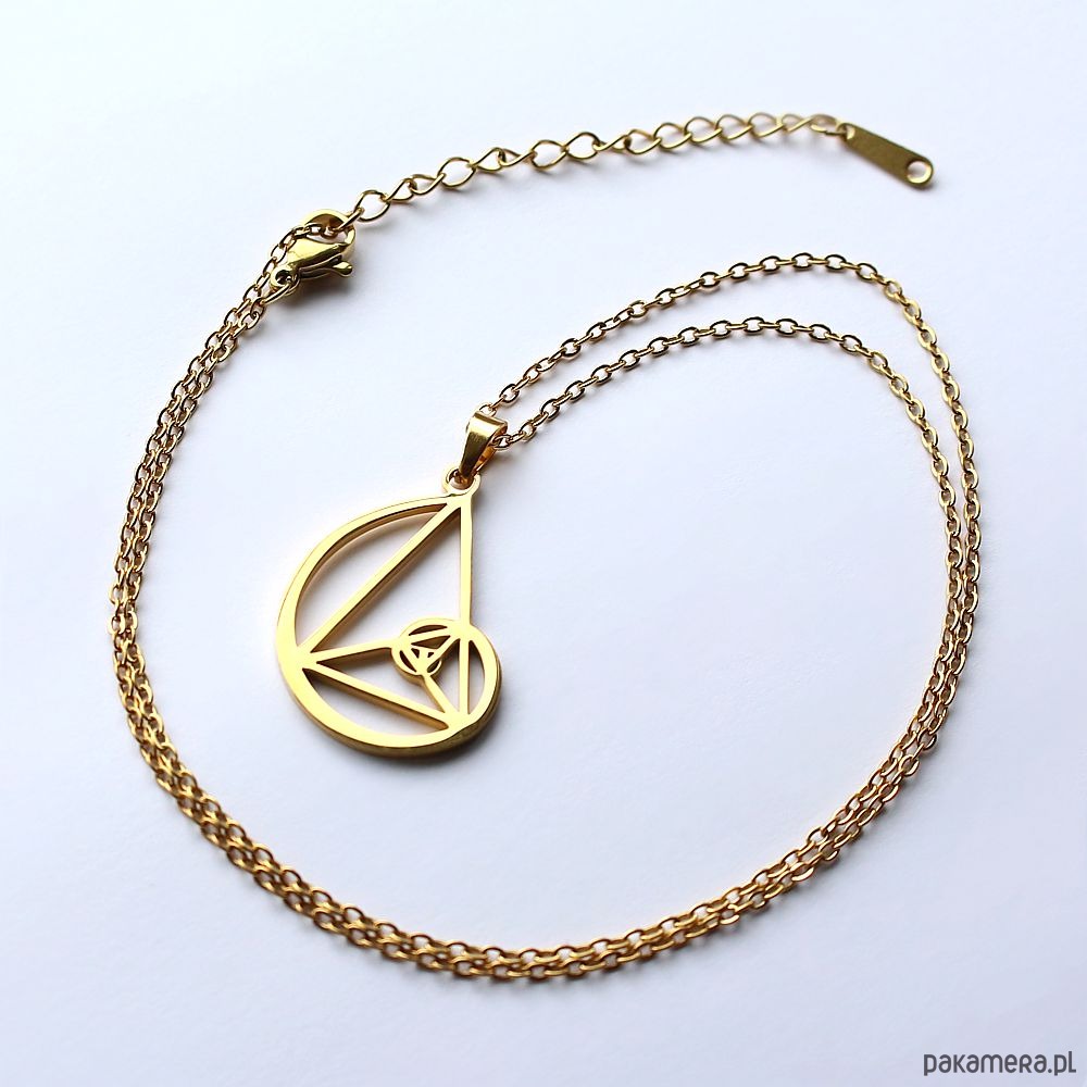 Energetyczny wisior ze spiralą Fibonacciego wykonany ręcznie ze stali szlachetnej pozłacanej 24k złotem.