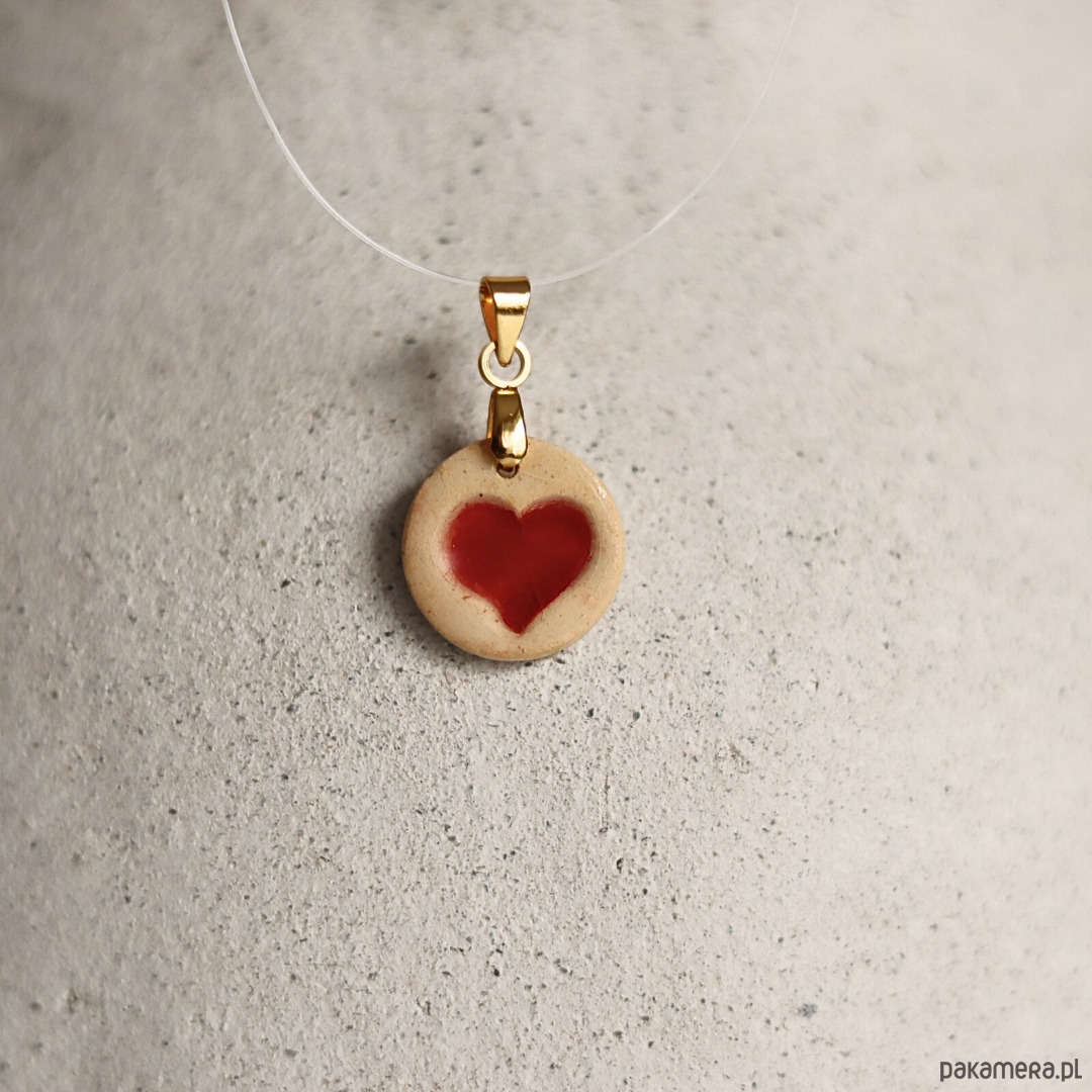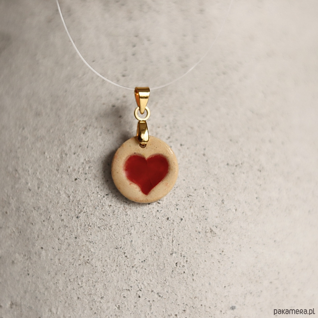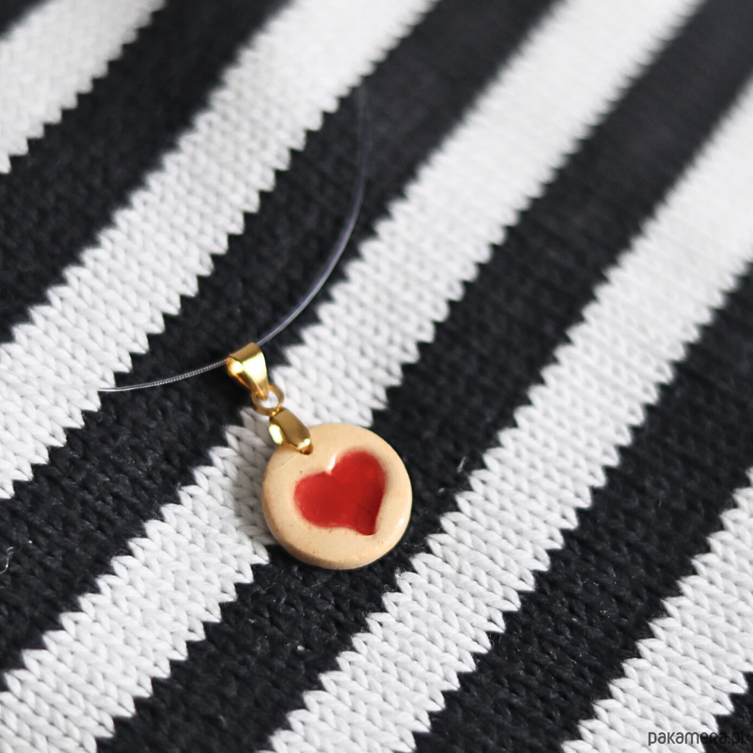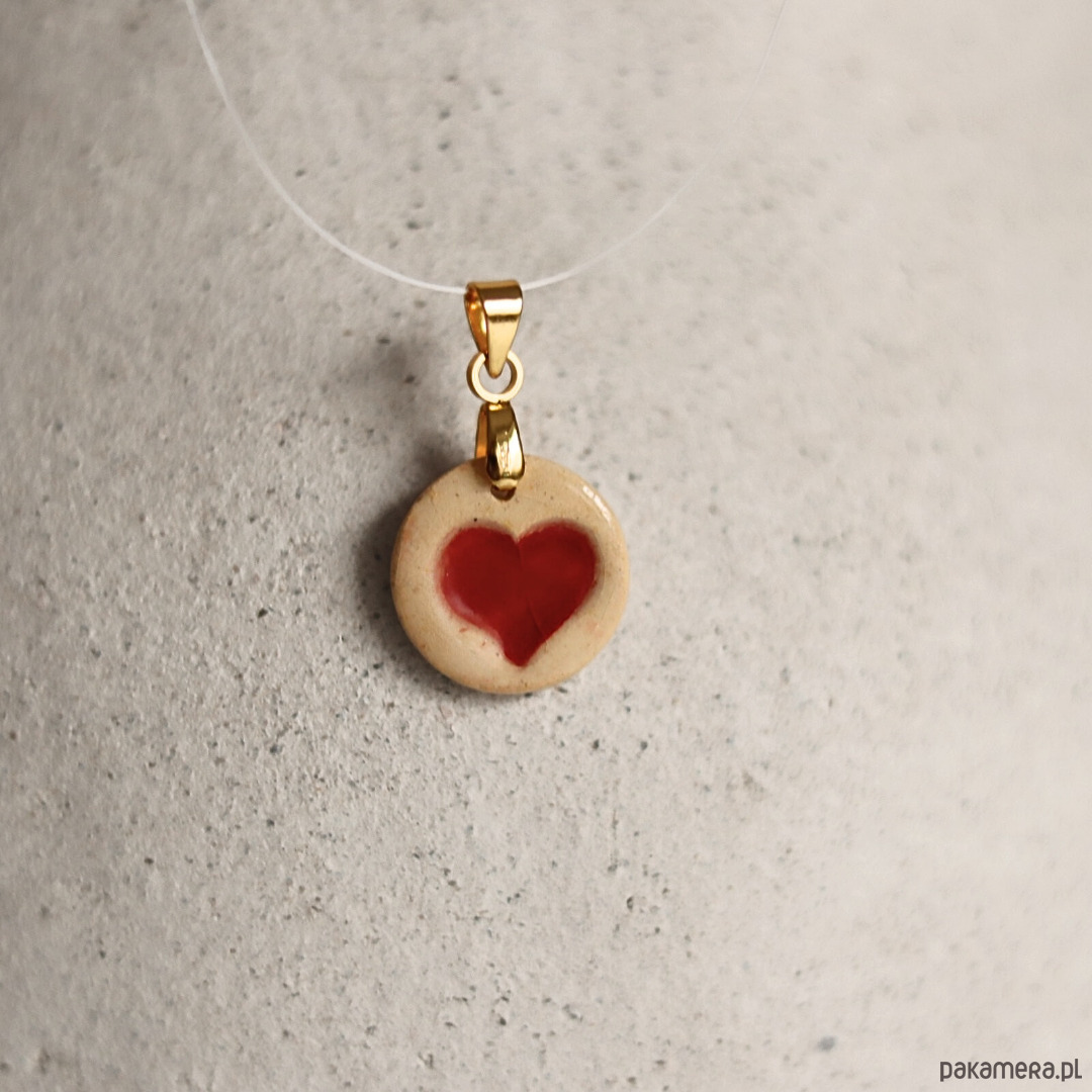 Wisiorek z ceramiczną zawieszką z czerwonym serduszkiem.