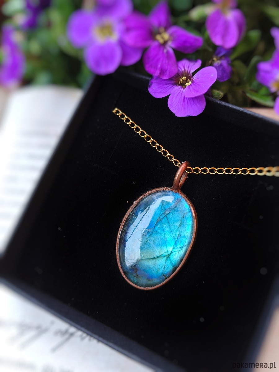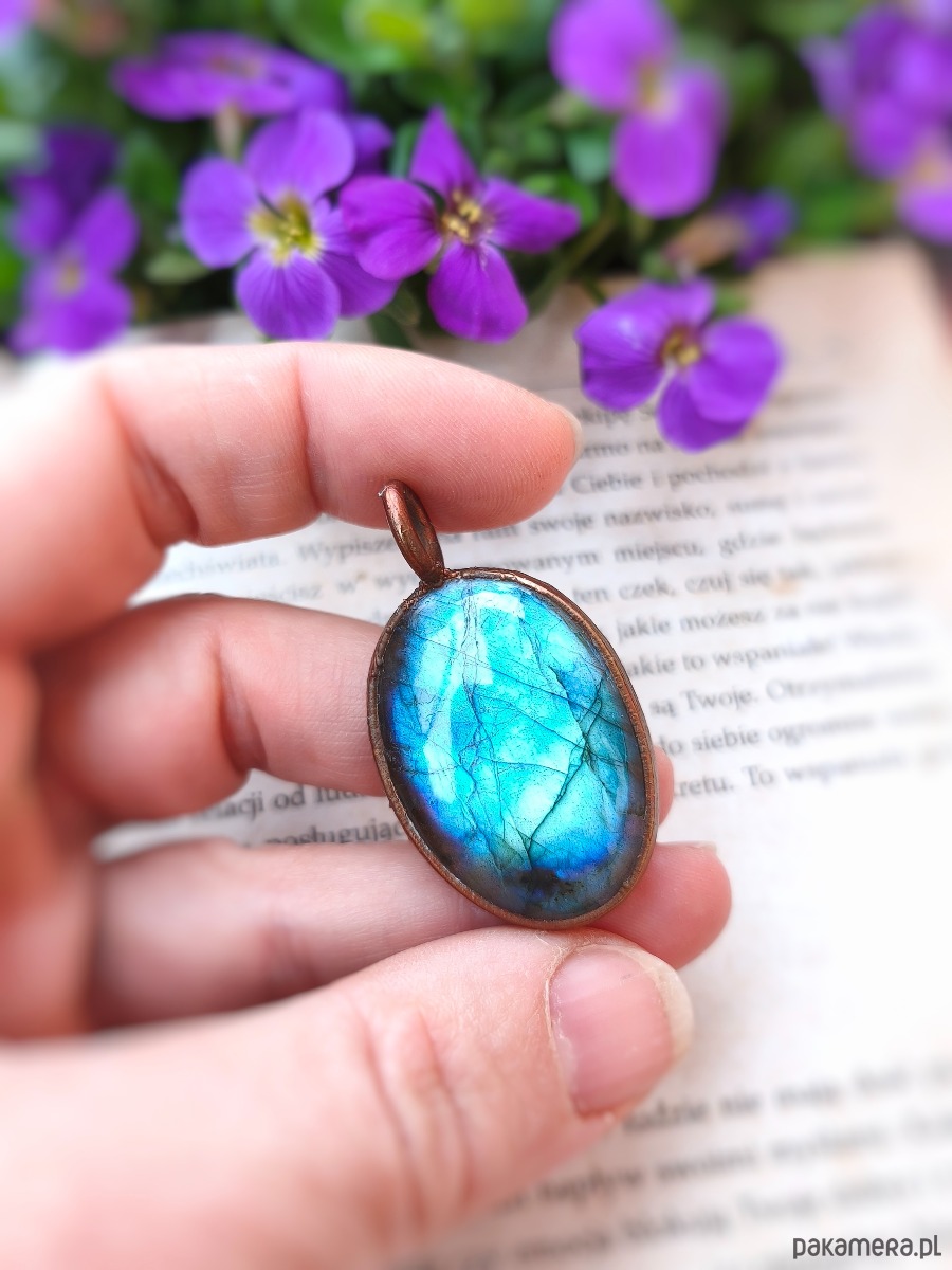Wisiorek Cichy Błękit z labradorytu i miedzi