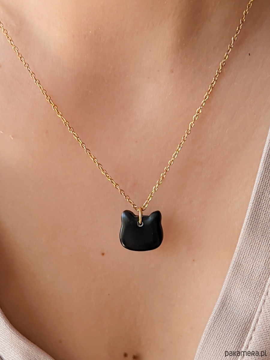 Wisiorek czarny kot, prezent dla osoby kochającej koty, kociarza, kociary