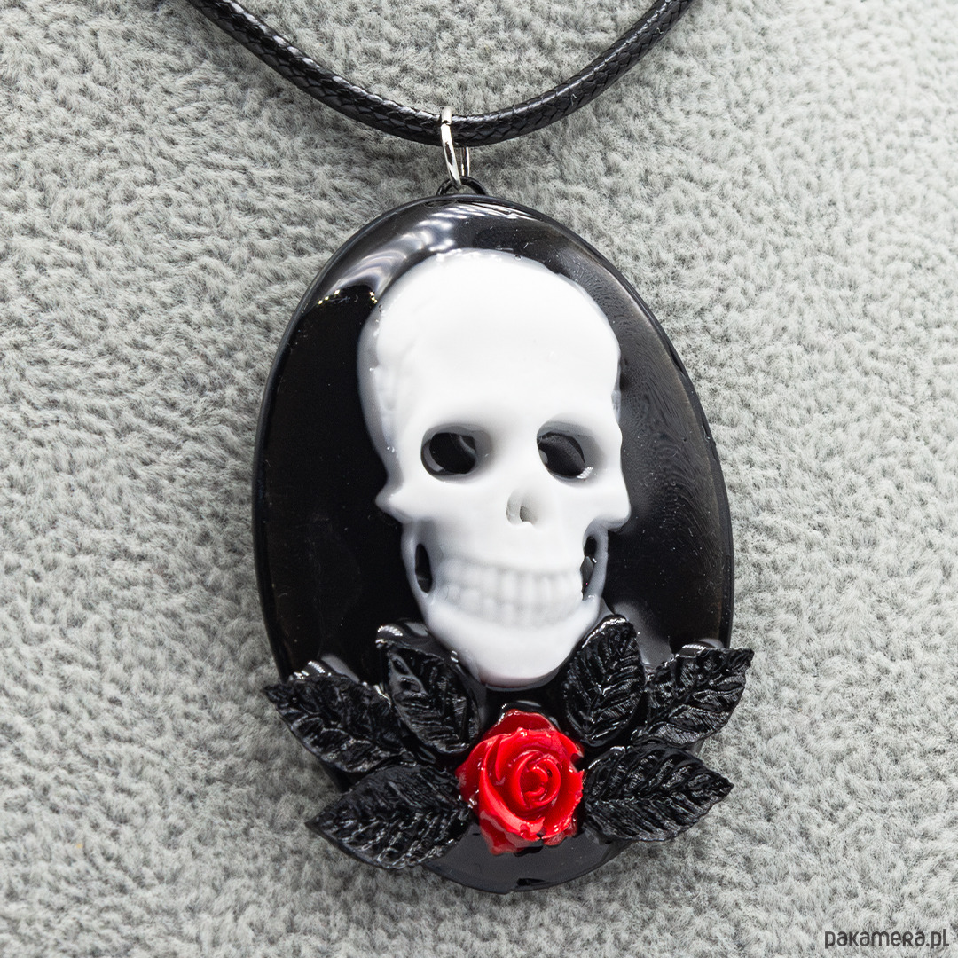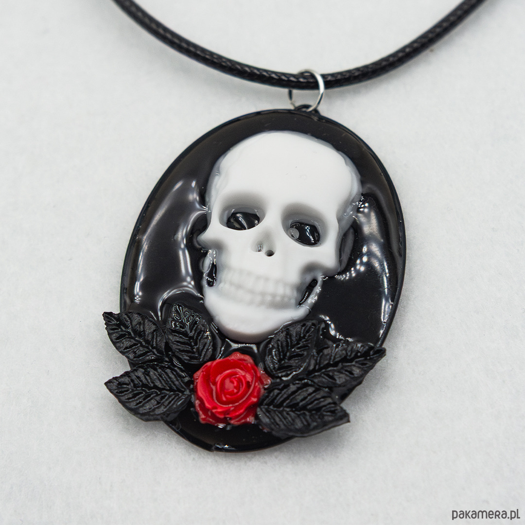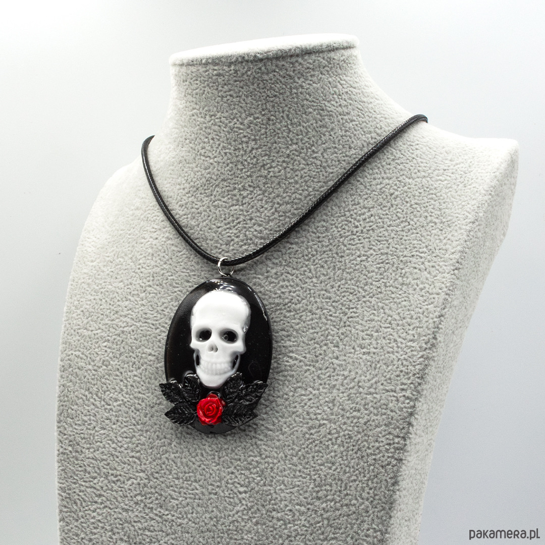 Wisiorek gotycki z żywicy z czaszką i różą pend 007