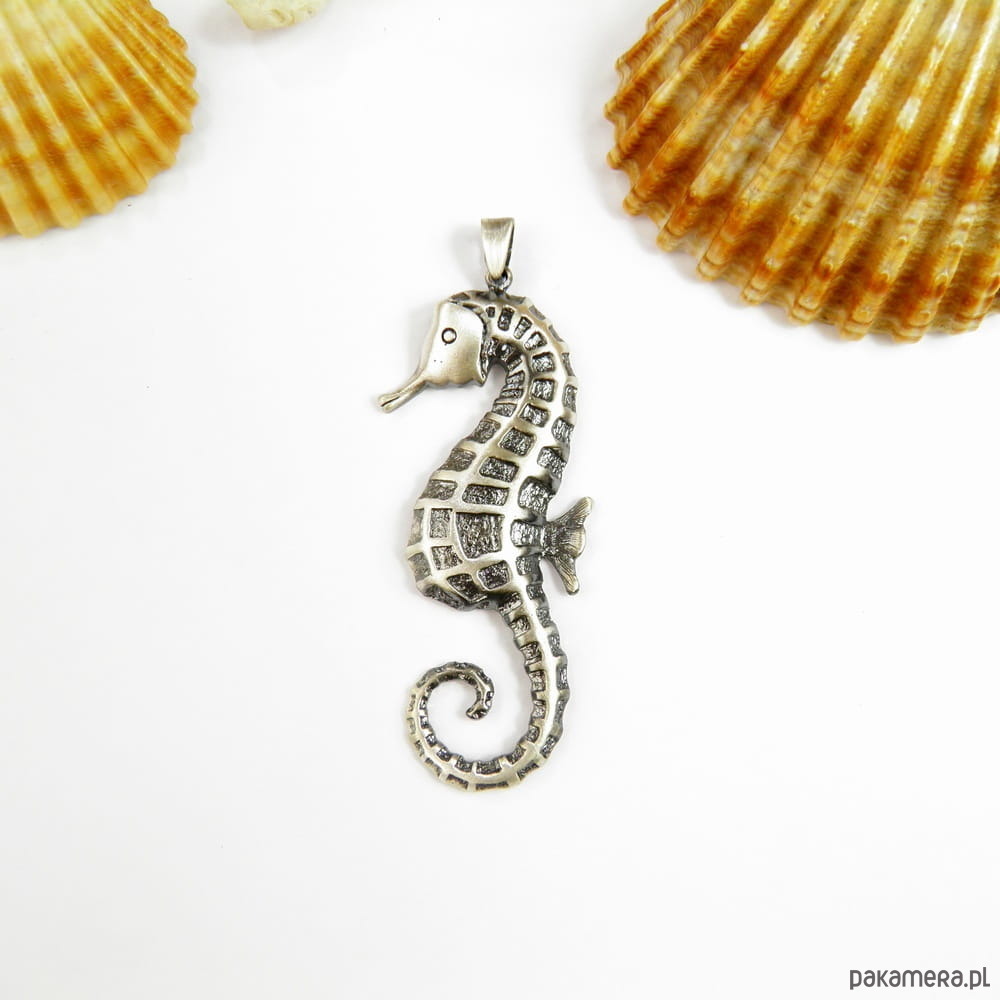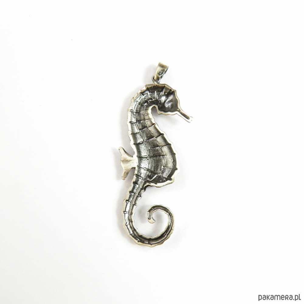 Urocza zawieszka wykonana ze srebra próby 925 przedstawiająca konika morskiego.