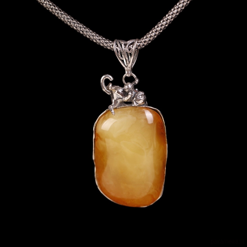 Wisiorek kot na bursztynie bałtyckim