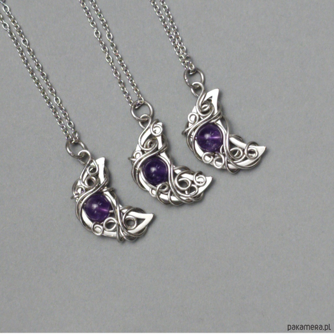 Wisiorek księżyc fioletowy ametyst wire wrapping