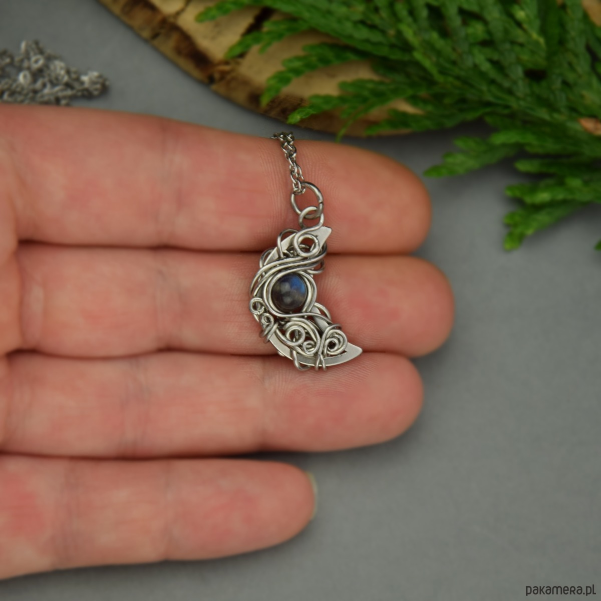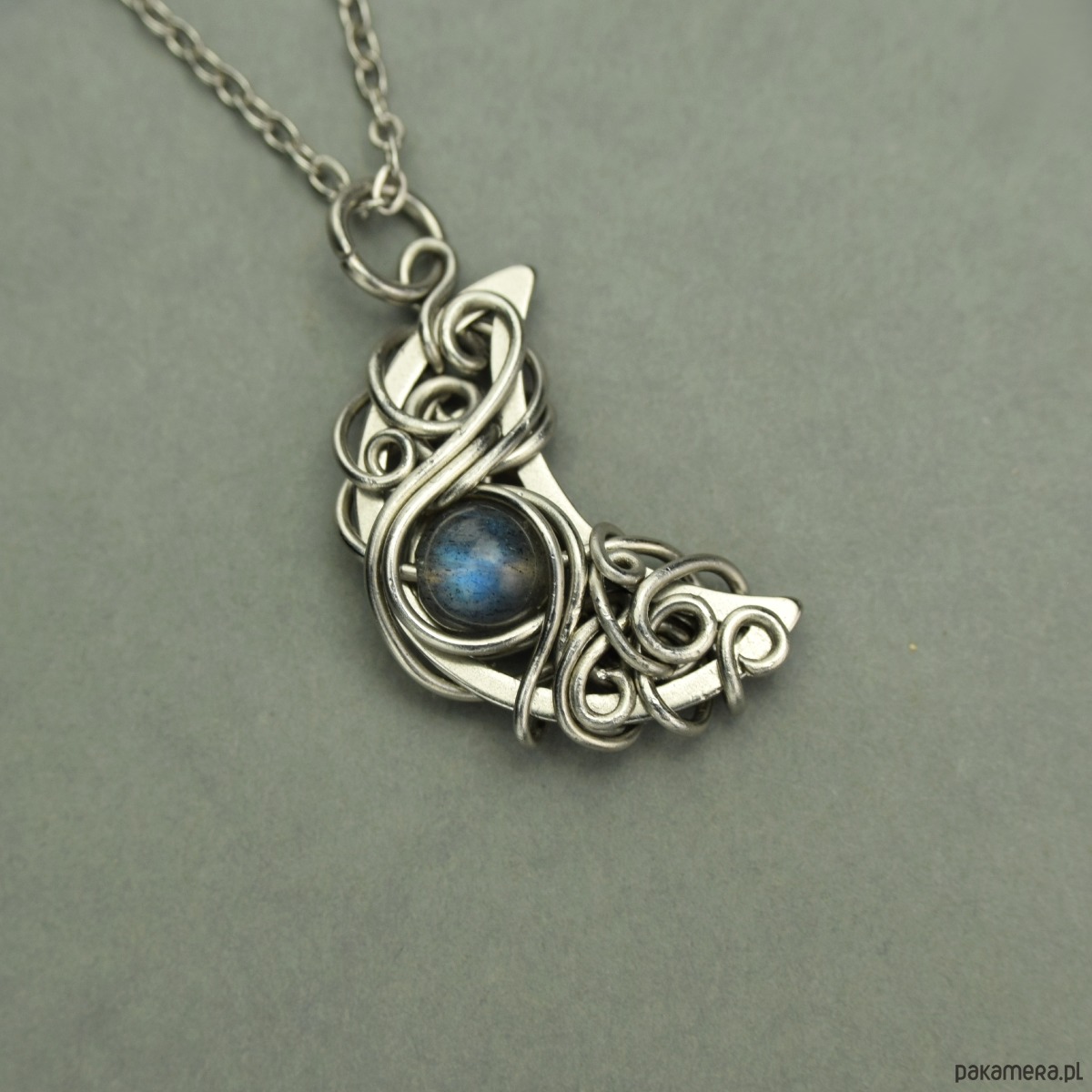 Wisiorek księżyc niebieski labradoryt wire wrapping