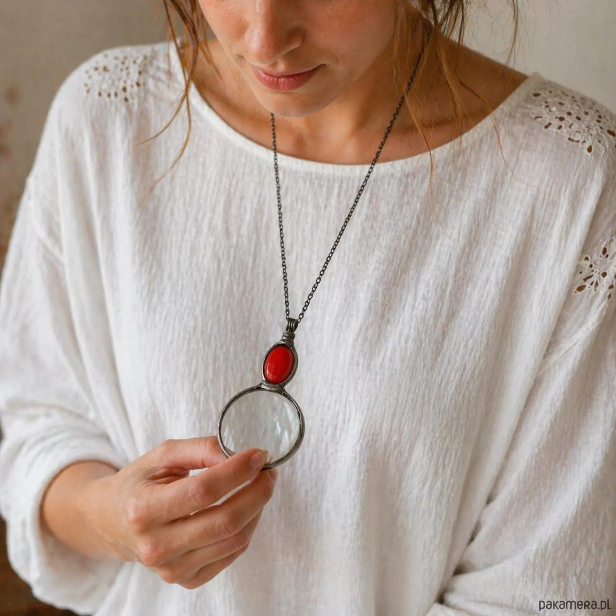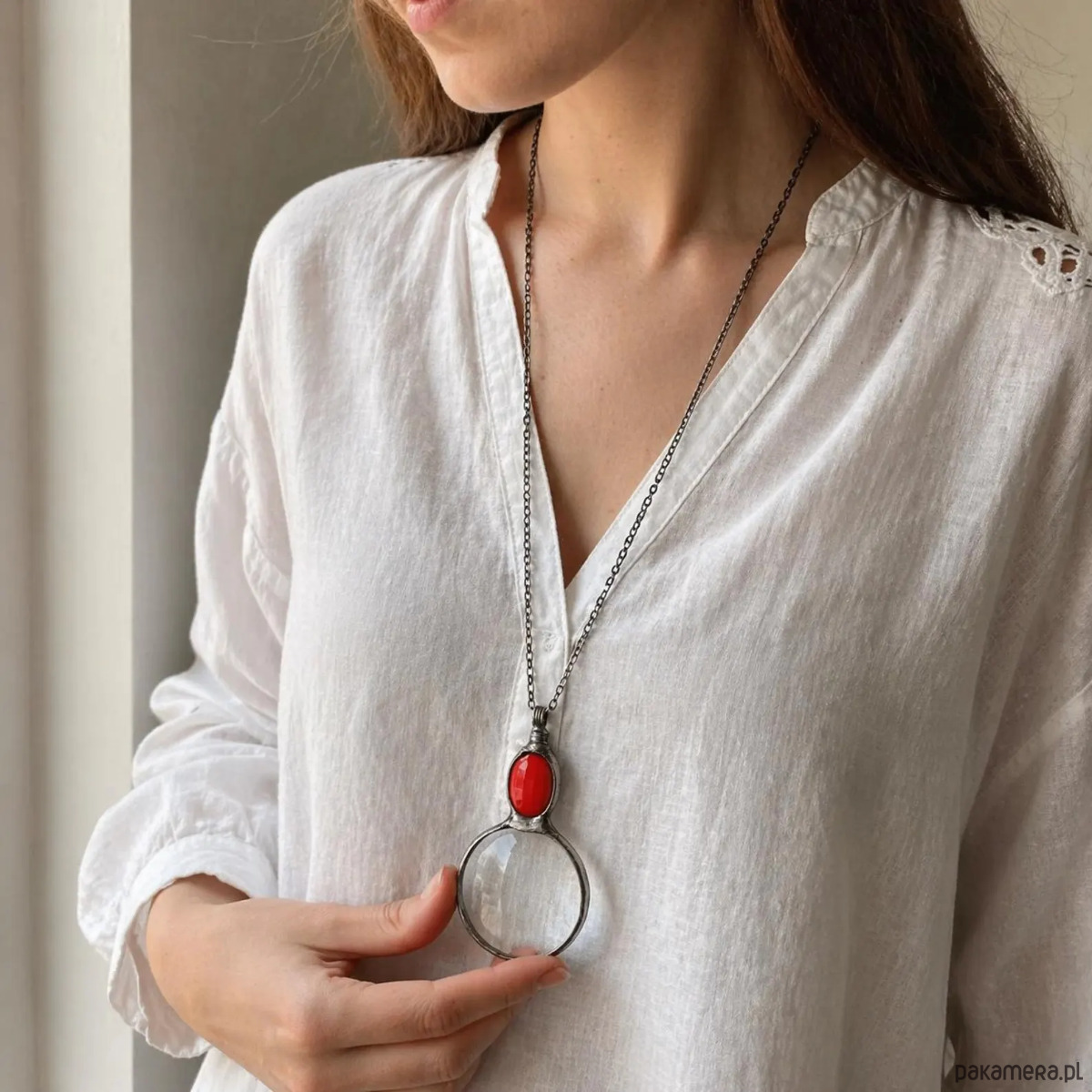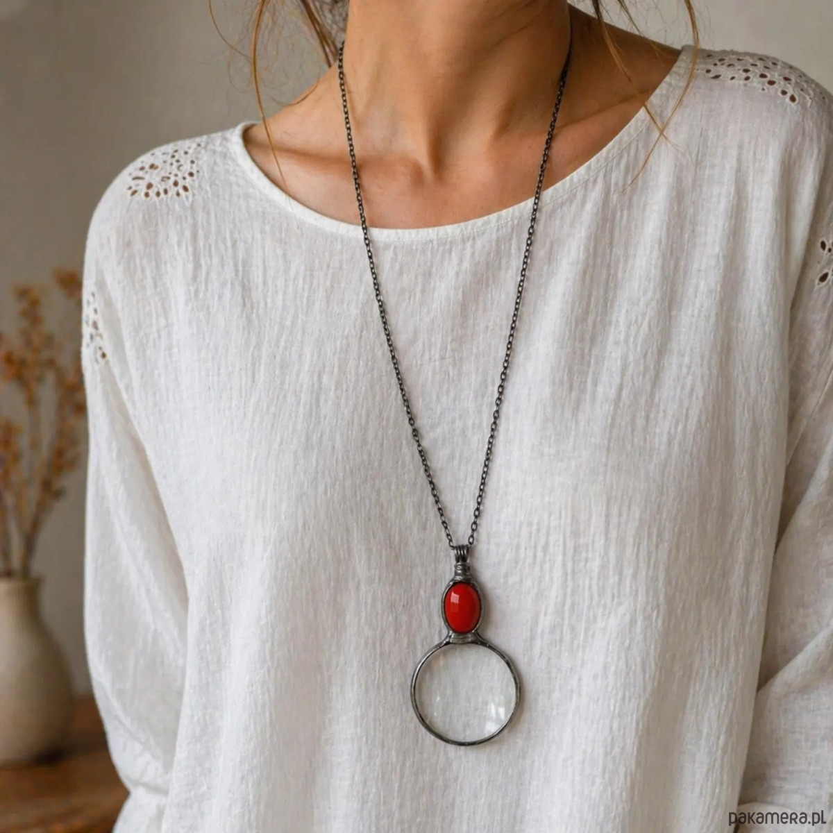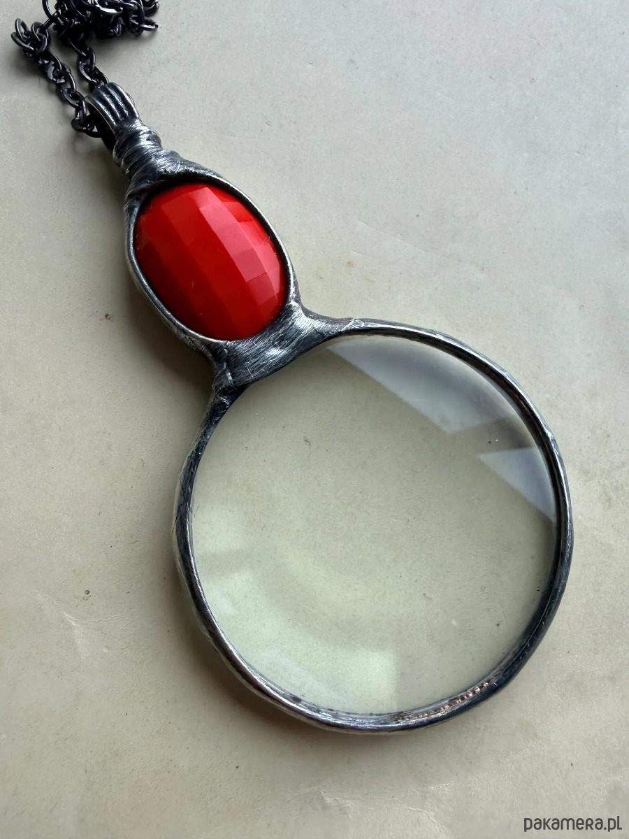 Wisiorek lupa z czerwonym szkielkiem