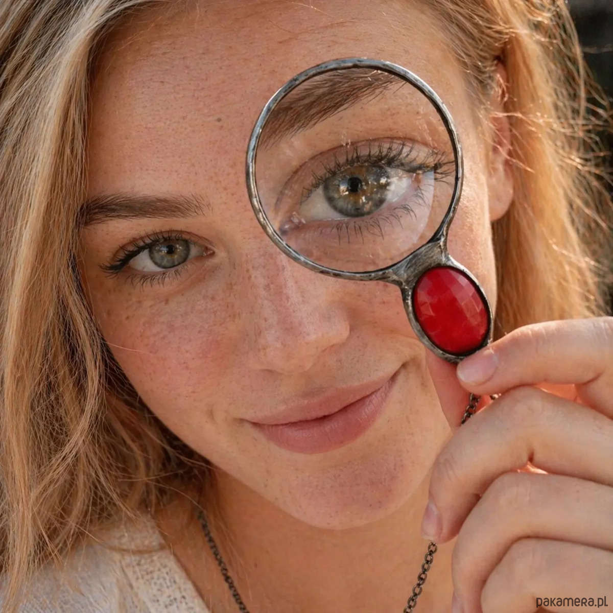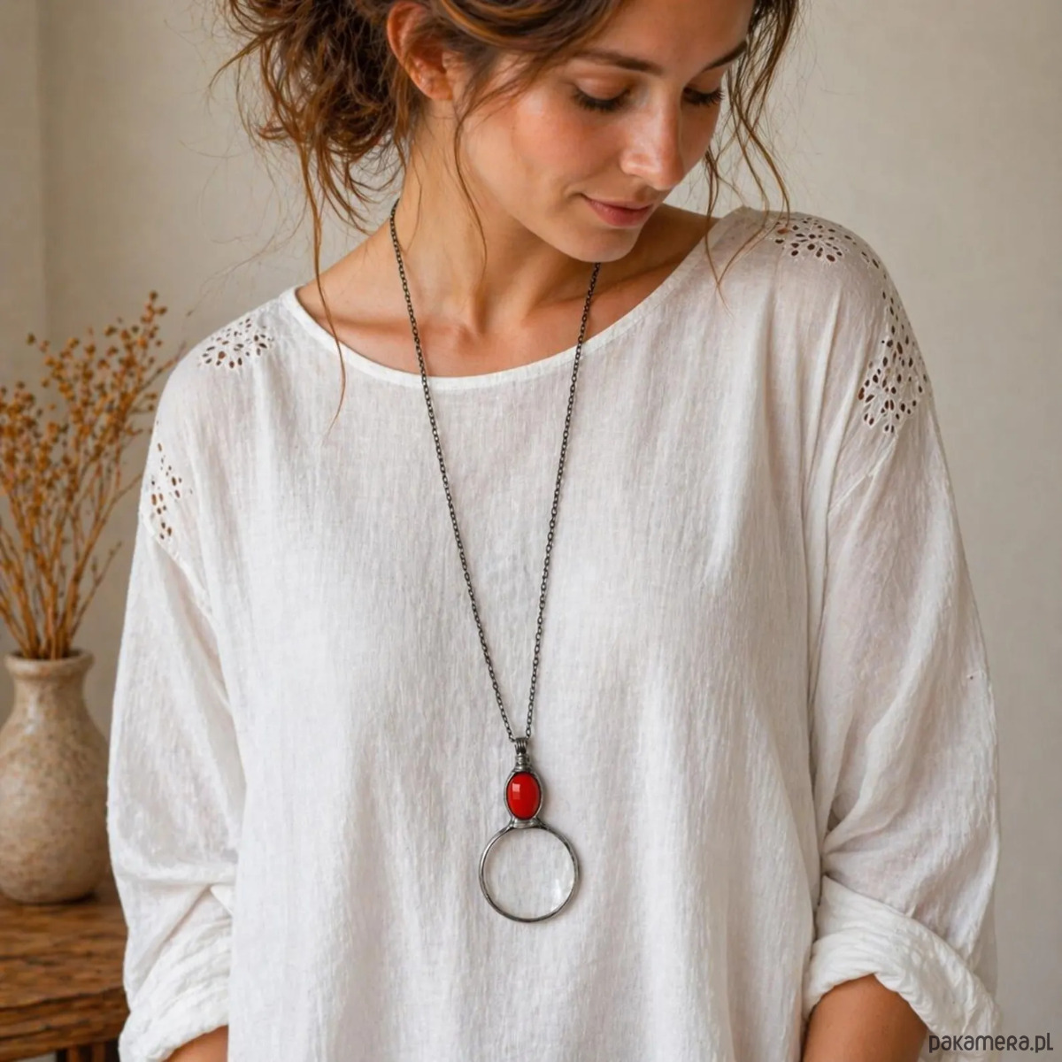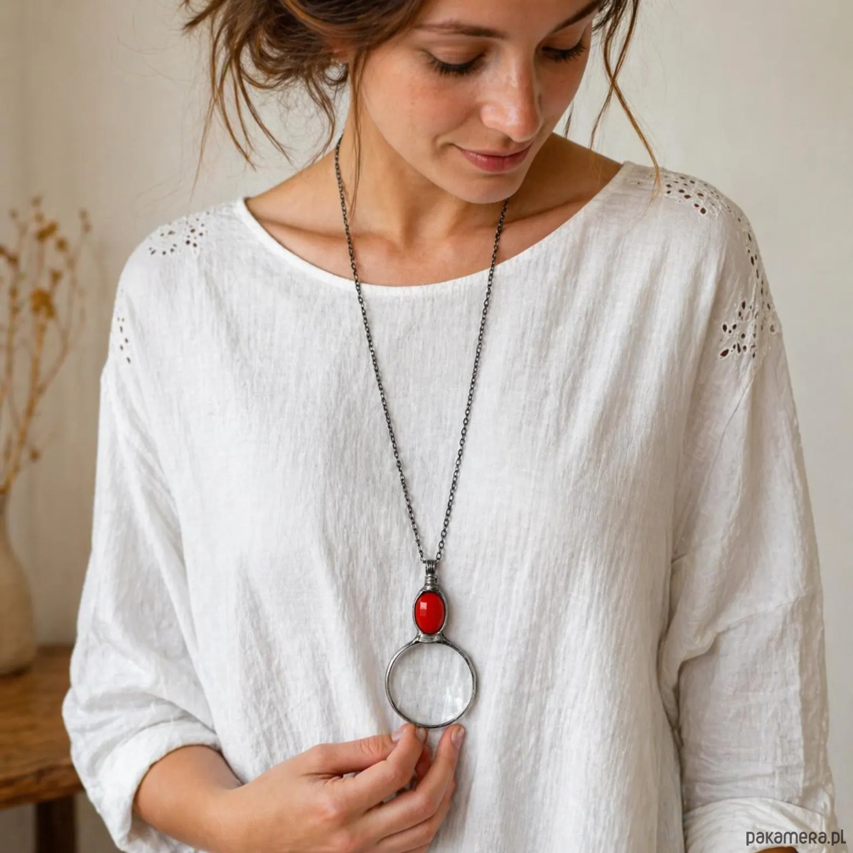 Wisiorek lupa z czerwonym szkielkiem