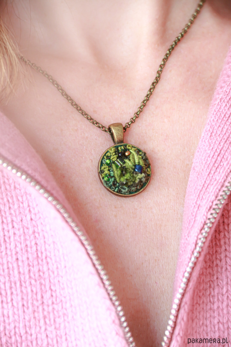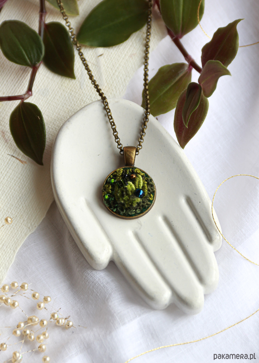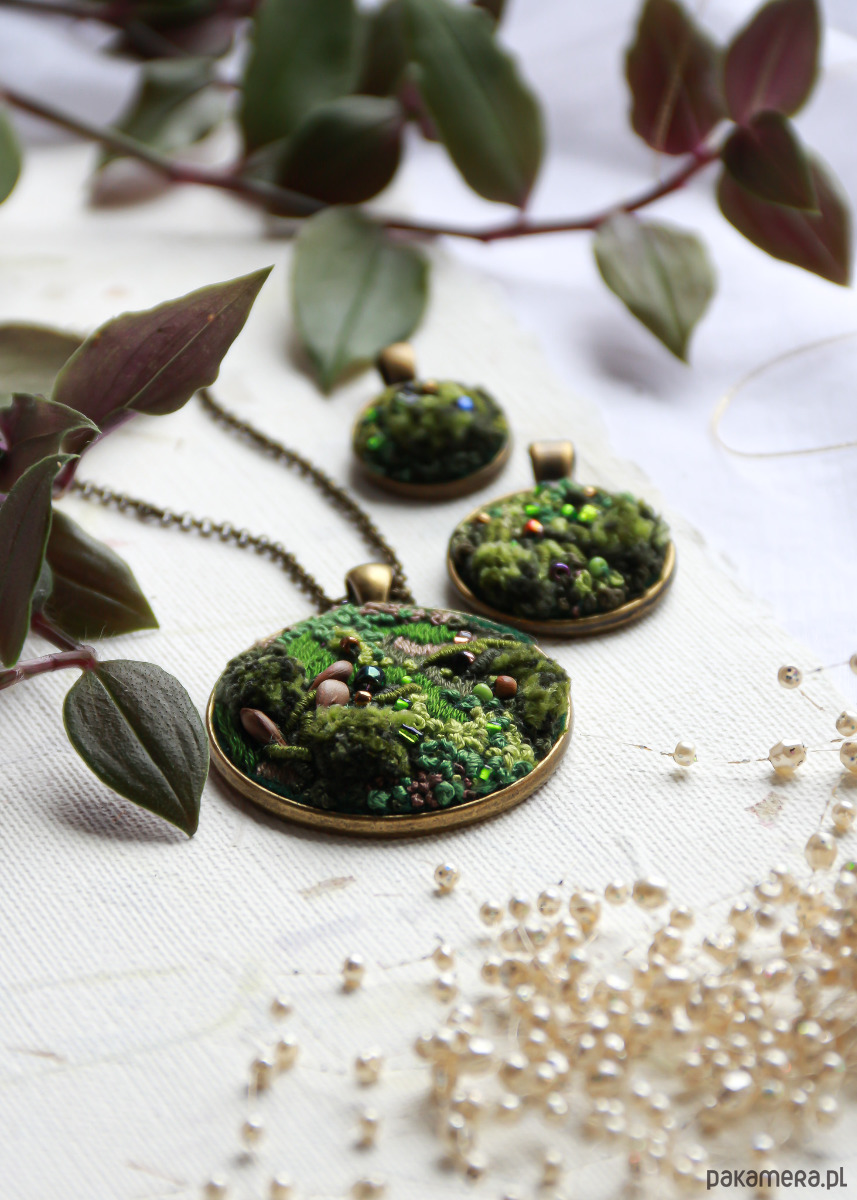 Haftowany mech pozwoli Ci w każdej chwili przypomnieć sobie fakturę mchu. To sensoryczna uczta - miękkość nici i chłód szklanych koralików. Aż prosi się o to, by go pomiziać. ;)