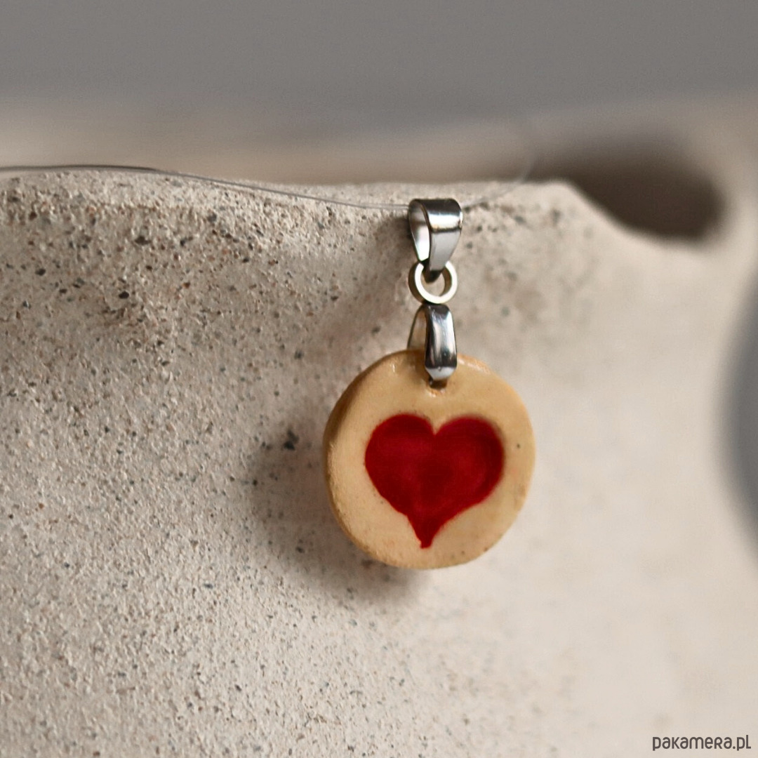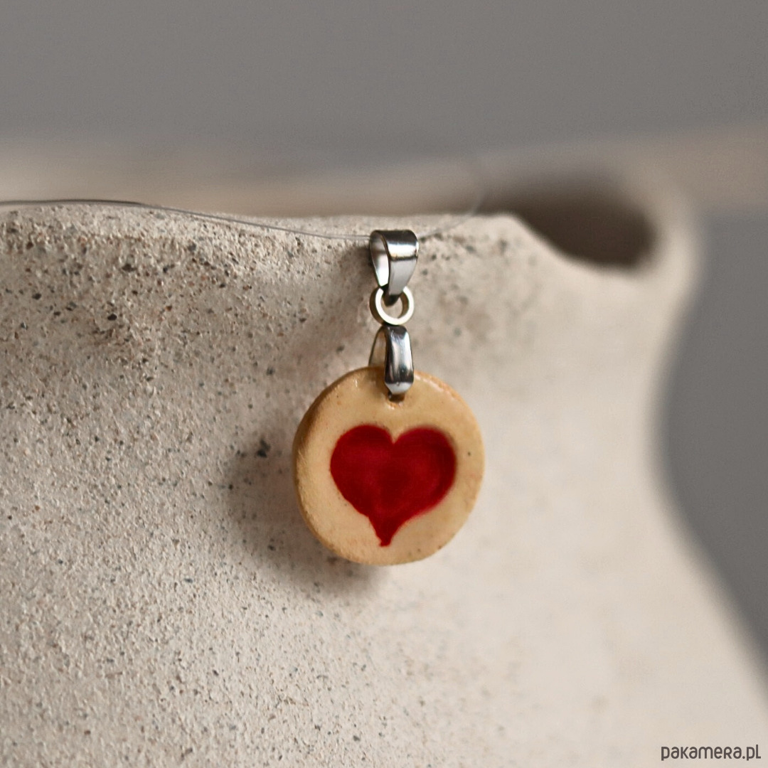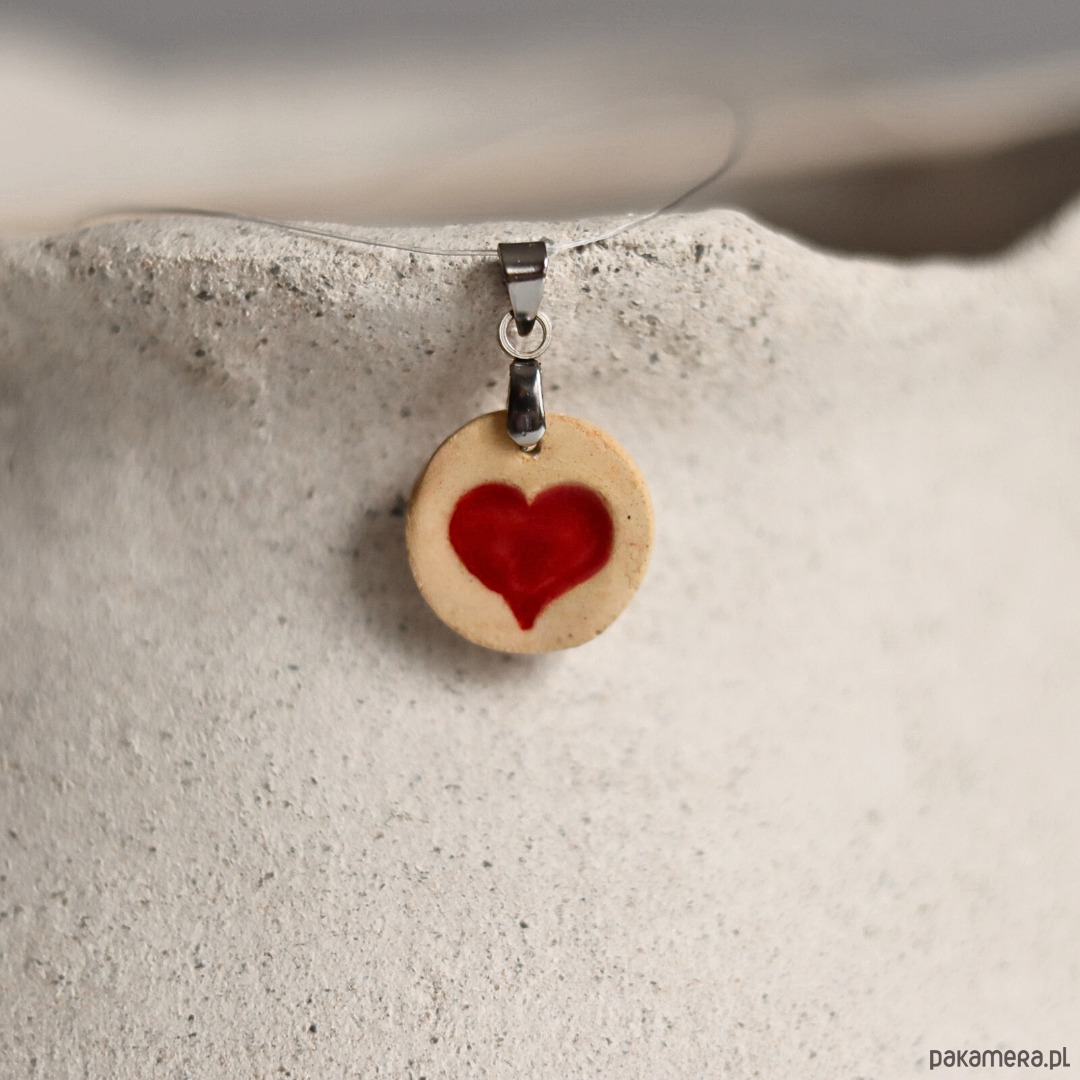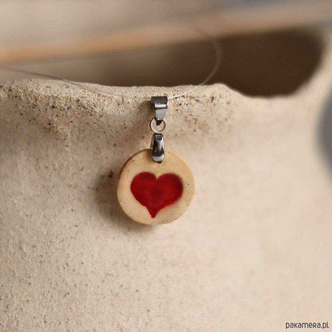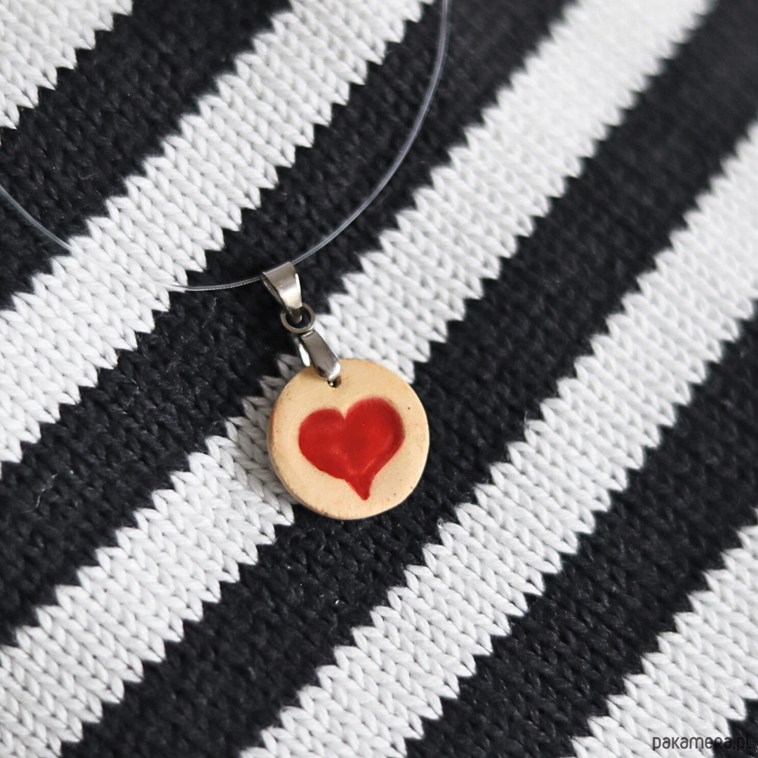 Wisiorek z ceramiczną zawieszką z czerwonym mini sercem.