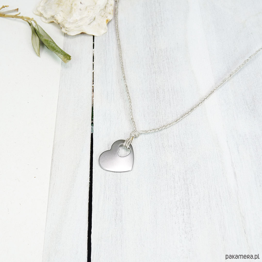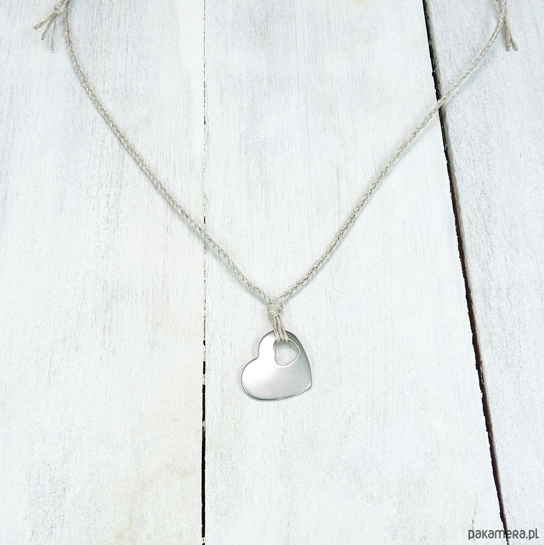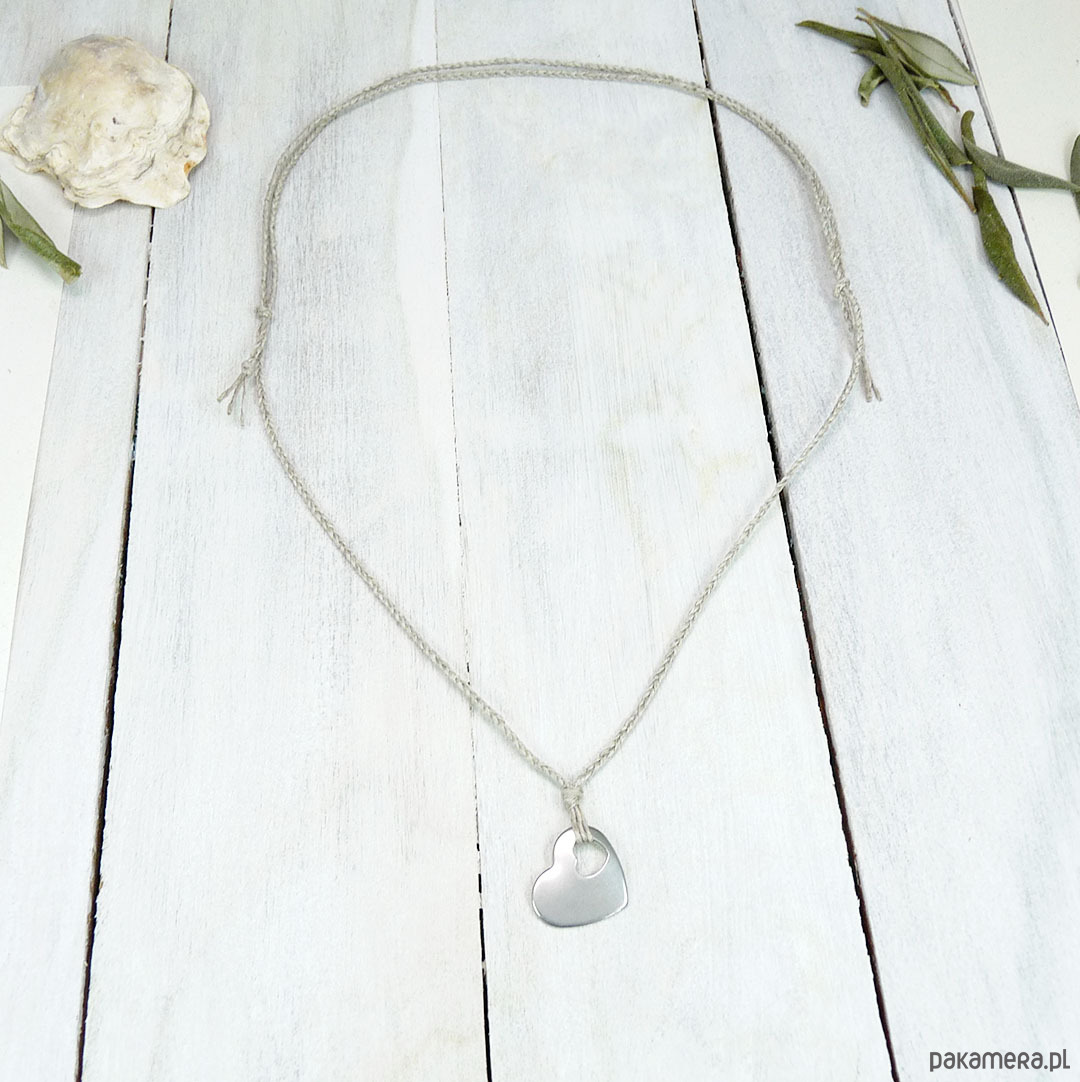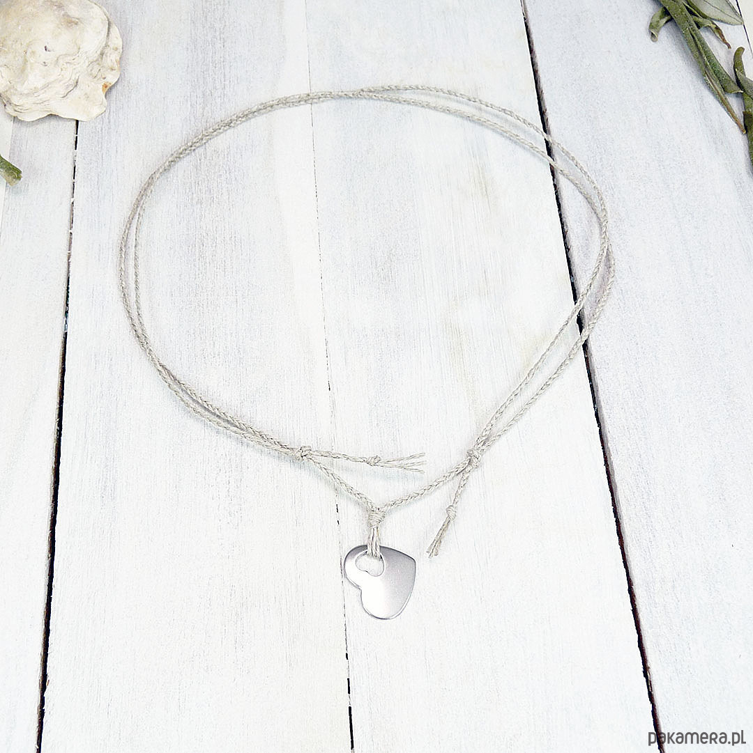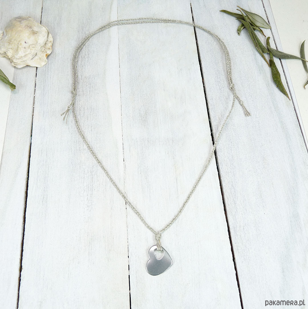 serce stal szlachetna 18x15 mm, naturalny len spleciony w warkoczyk 2 mm