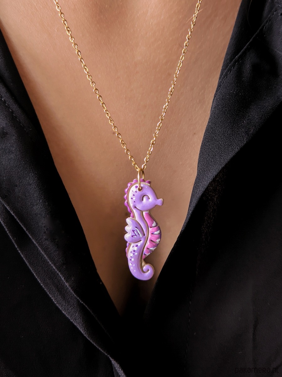 Wisiorek naszyjnik Konik morski, fioletowa zawieszka z konikiem morskim