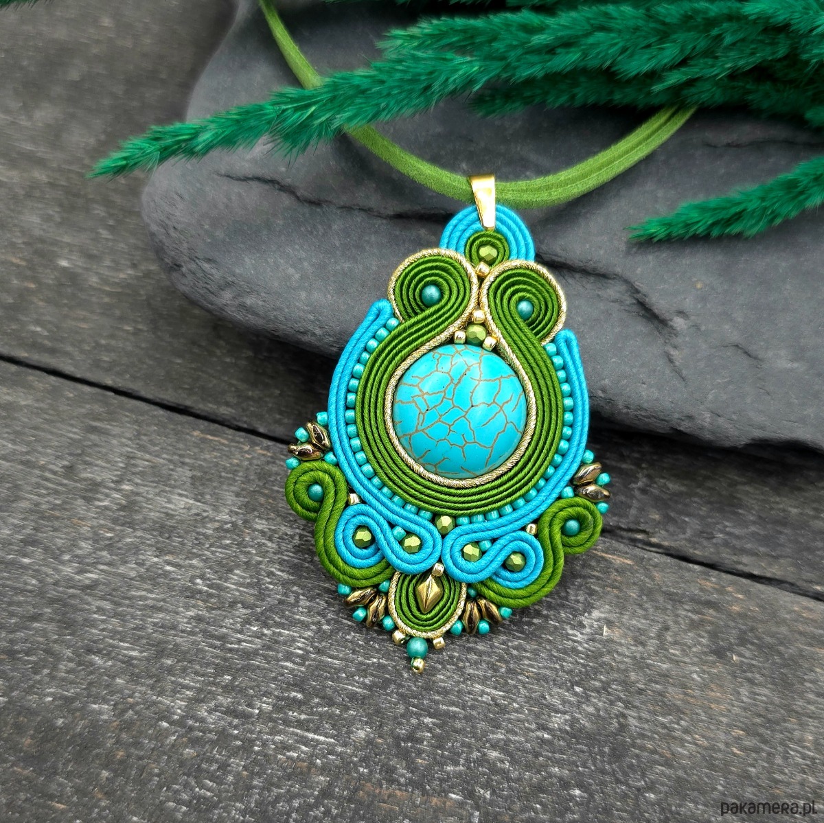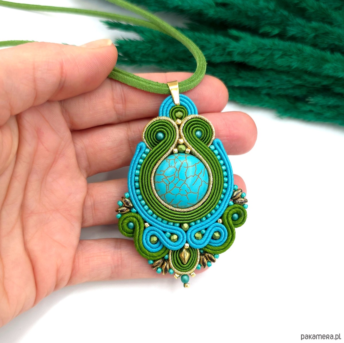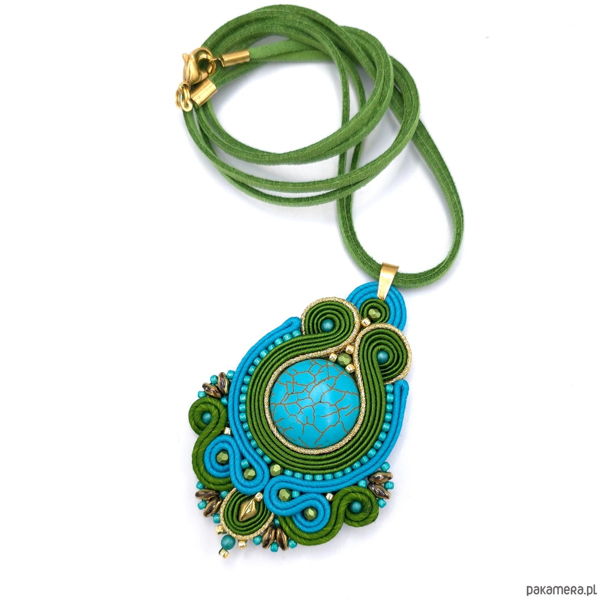 Wisiorek naszyjnik sutasz turkusowo zielony Iris z howlitem