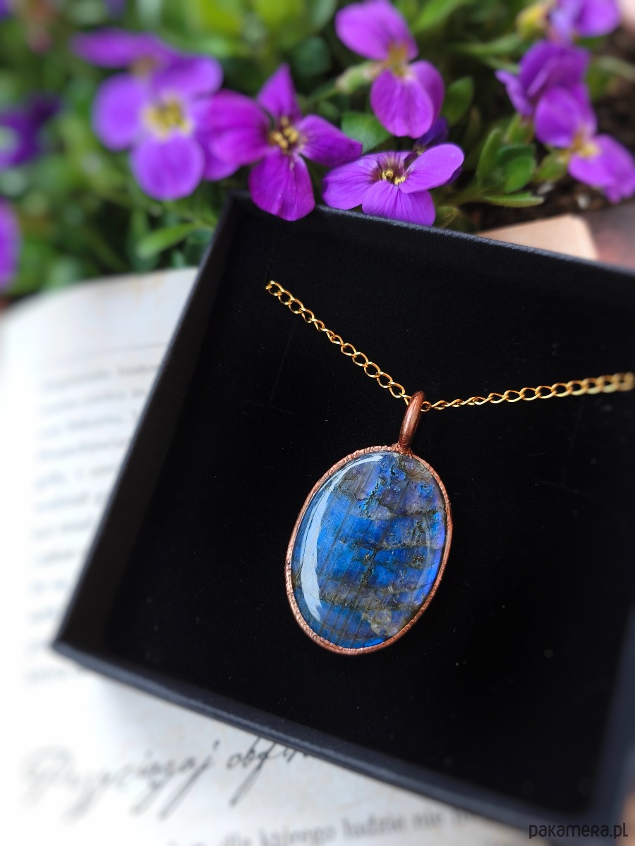 Labradoryt od dawna kojarzony jest z intuicją i wewnętrzną równowagą. Pomaga zatrzymać się na chwilę i złapać oddech. Miedź natomiast symbolicznie łączy z naturą i przepływem energii, dlatego całość niesie w sobie subtelną głębię.