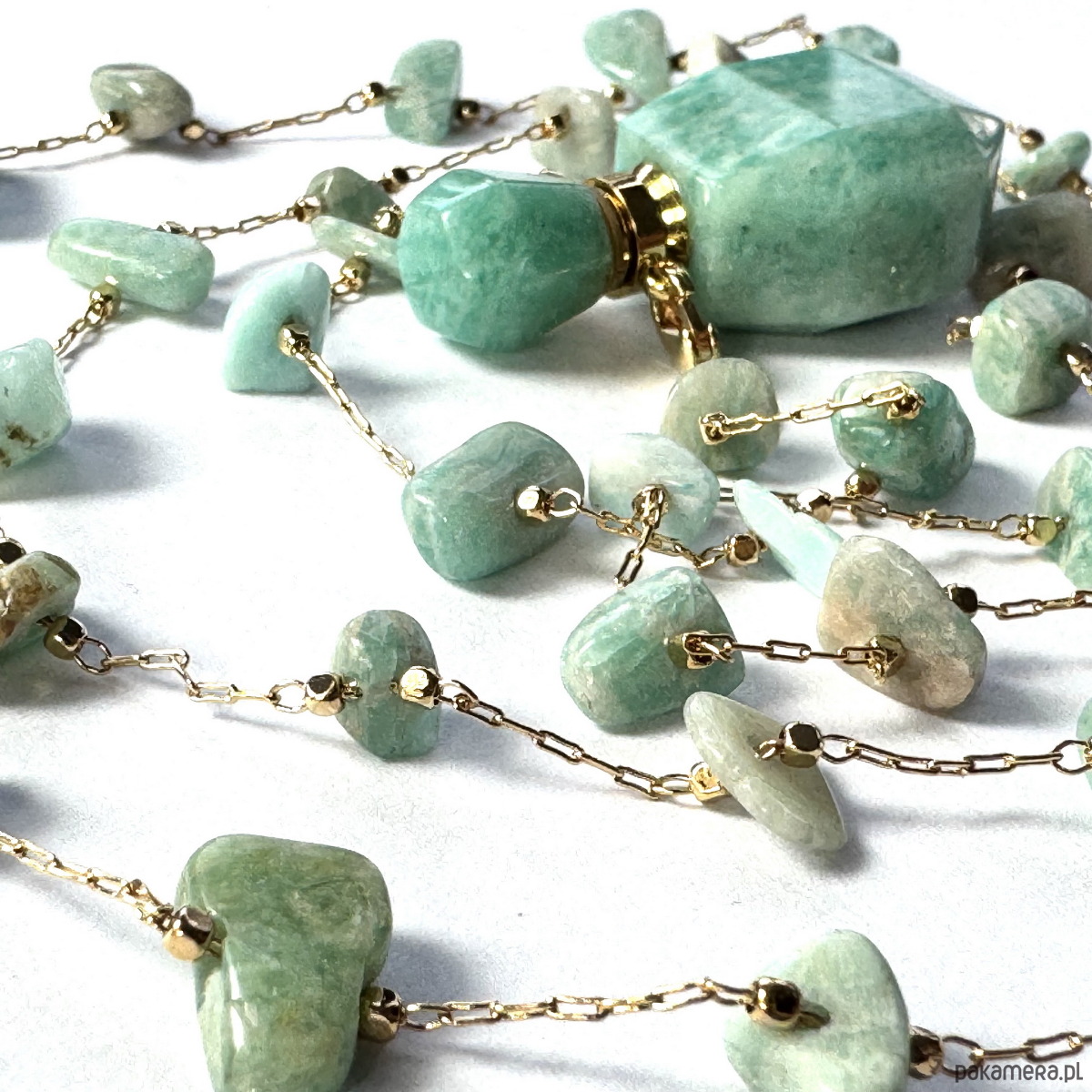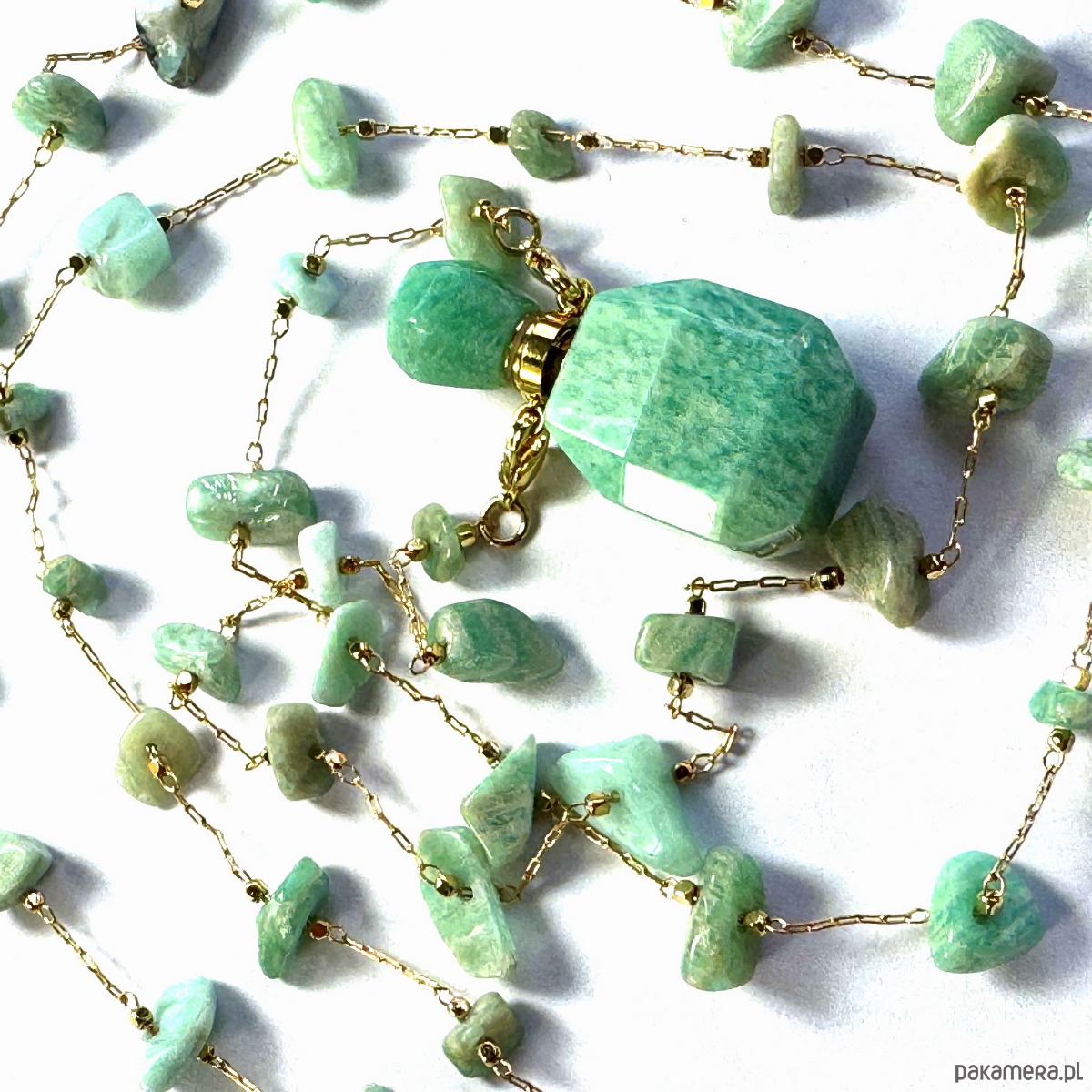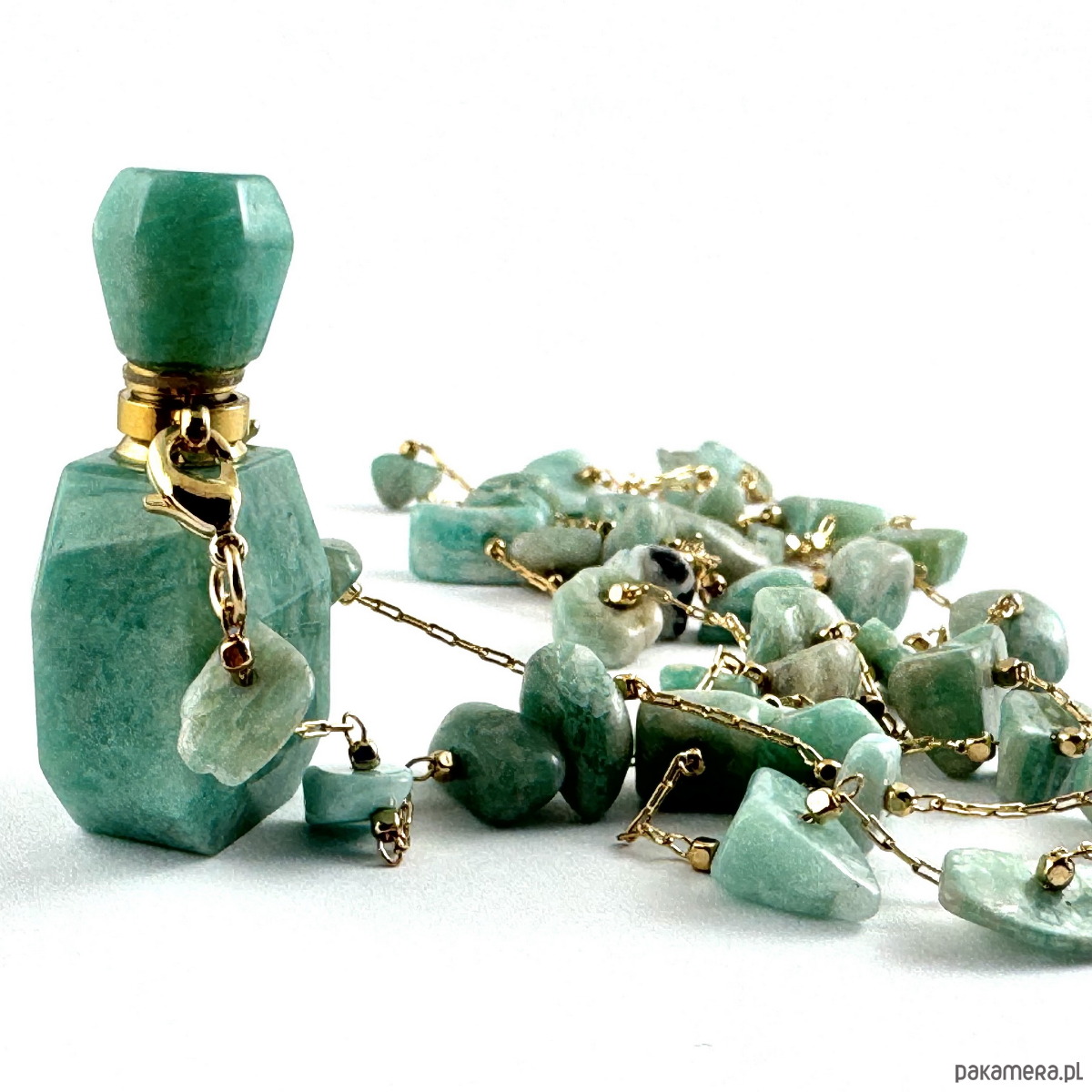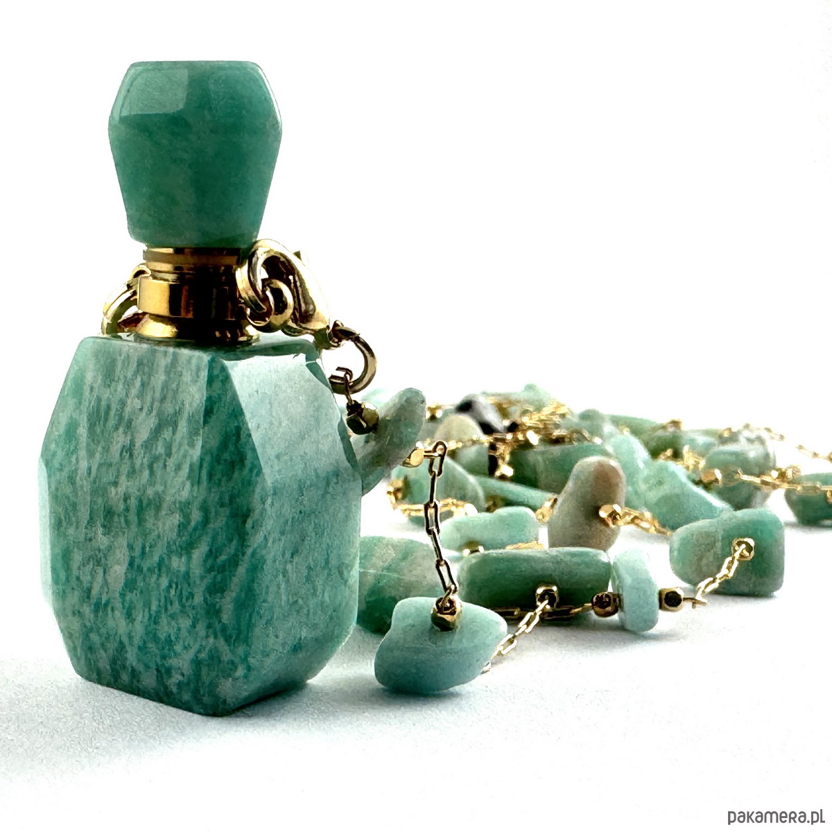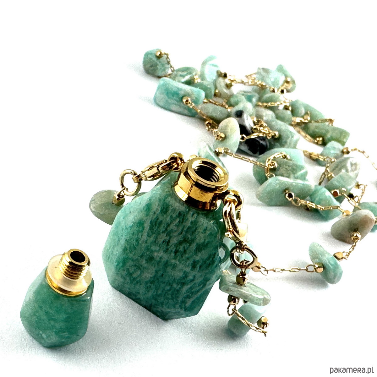 Wisiorek stworzony z kamieni naturalnych, na uroczej pozłacanej plecionce. Zakończony kamienną perfumetką, która daje Ci możliwość noszenia i używania Twoich ulubionych perfumów zawsze kiedy potrzebujesz.