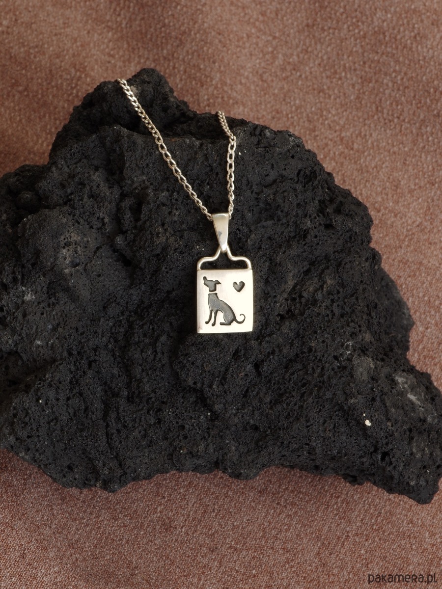 Materiał: srebro próby 925, piesek i serduszko pokryte patyną