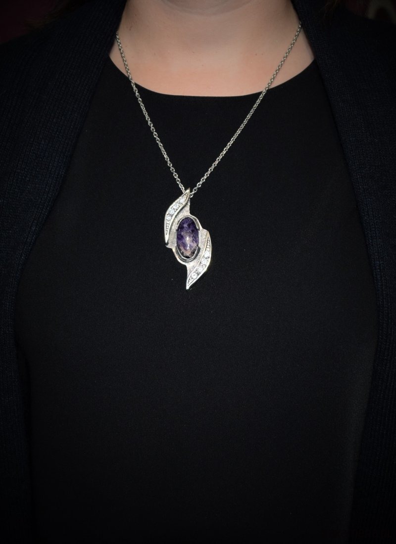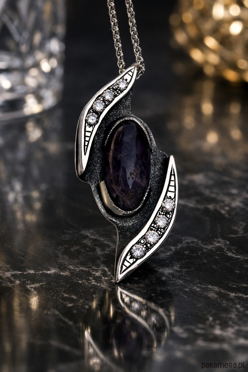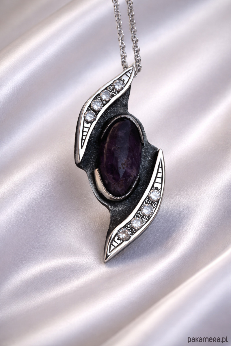 ✦ Unikalny wisiorek ręcznie wykonany od podstaw ze srebra pr 925 , naturalnego ametystu oraz białych cyrkonii.
