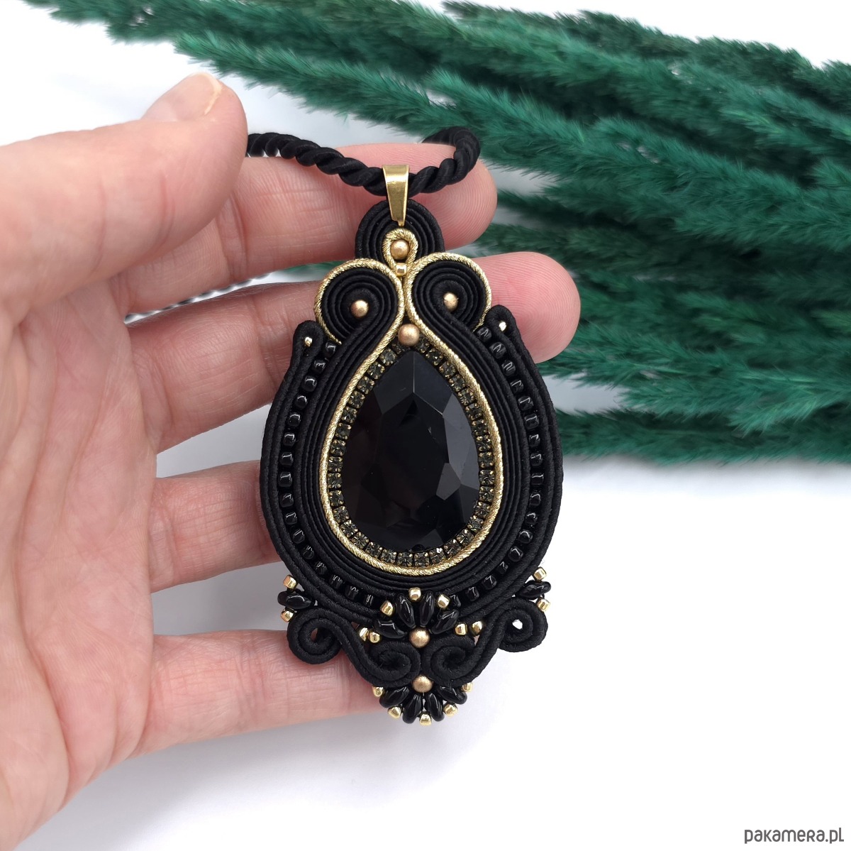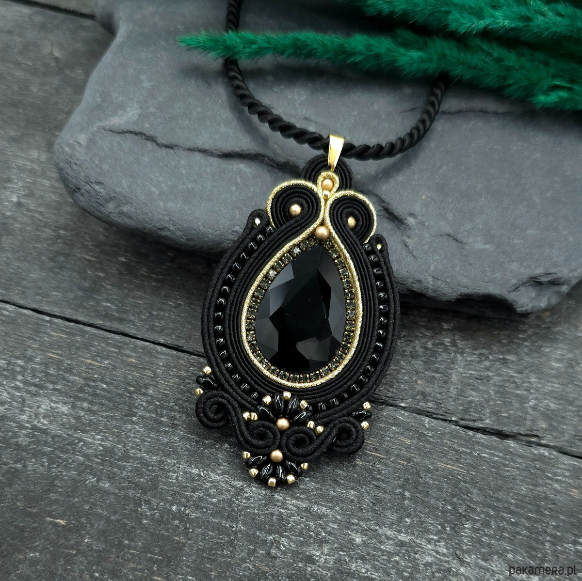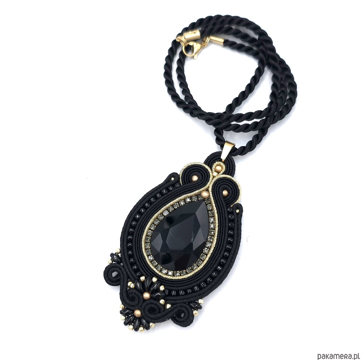 Wisiorek sutasz czarny Gaja z dużym kryształem elegancki klasyczny