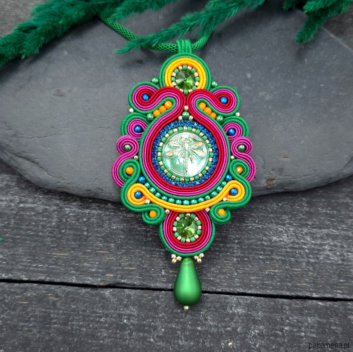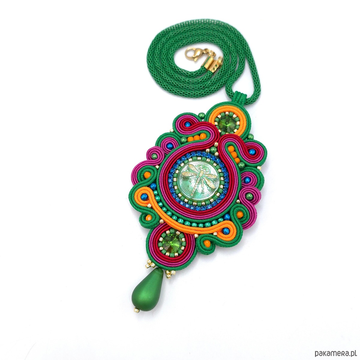 Wisiorek sutasz handmade kolorowy barwny naszyjnik Florina z ważką