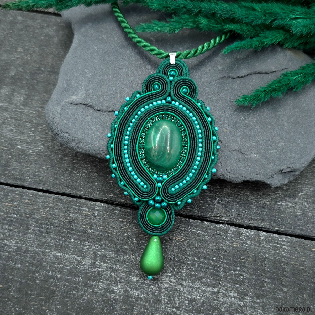 Wisiorek sutasz zielony z malachitem leśny Lumeria naszyjnik romantyczny