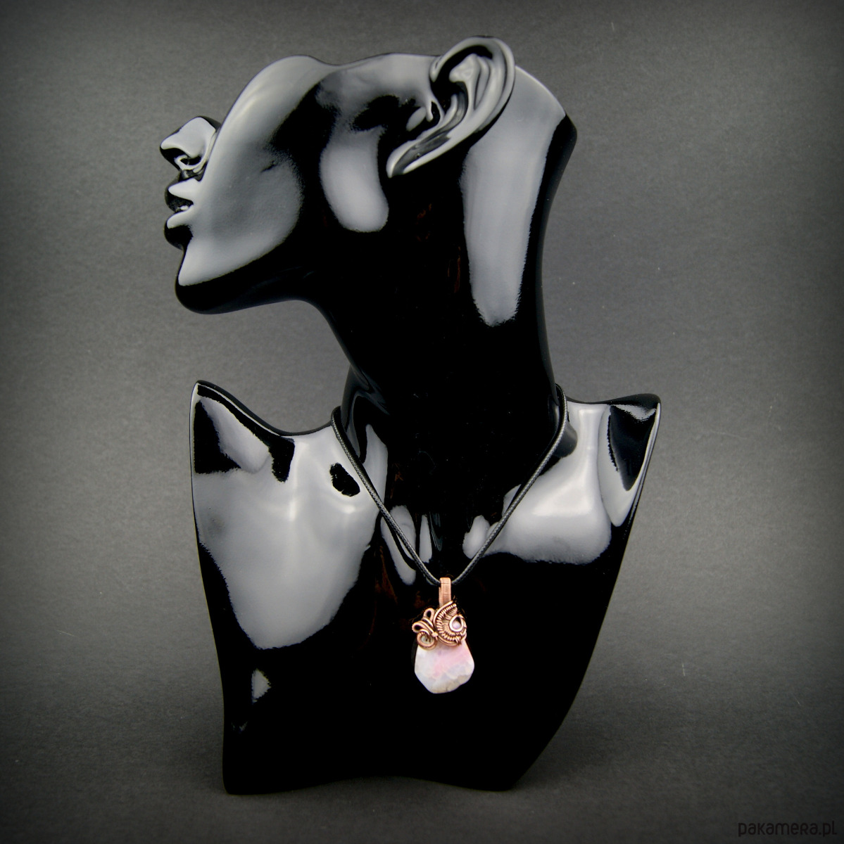 Wisiorek zawieszony na rzemyku o długości 45 cm (+ 5 cm przedłużki) – na życzenie klienta możliwość wymiany na inną długość.