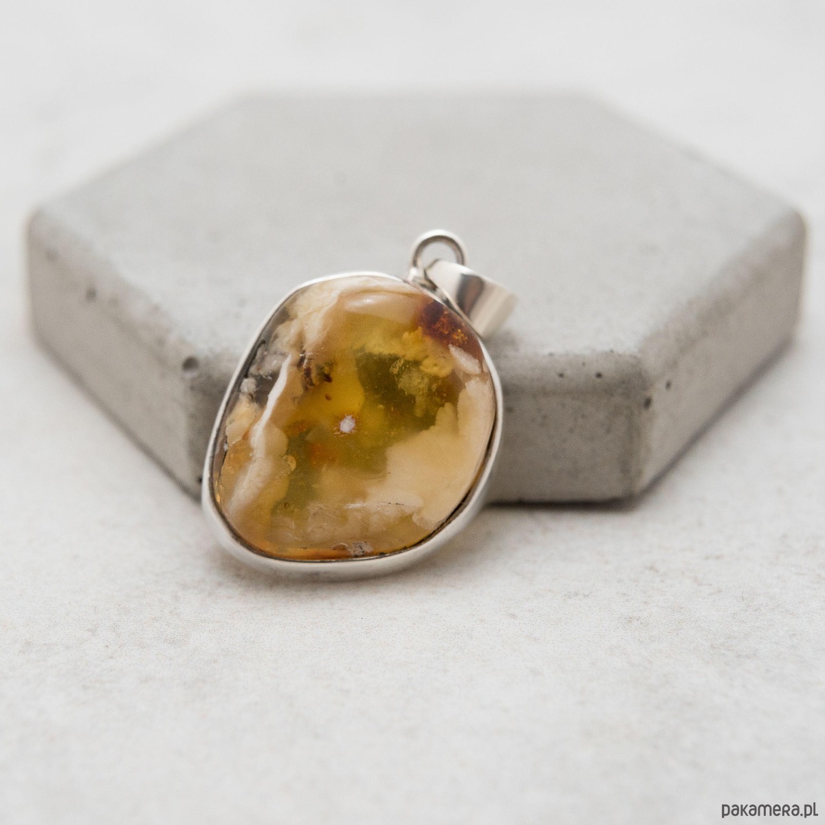 Wisior z naturalnego bursztynu bałtyckiego i srebra próby 925