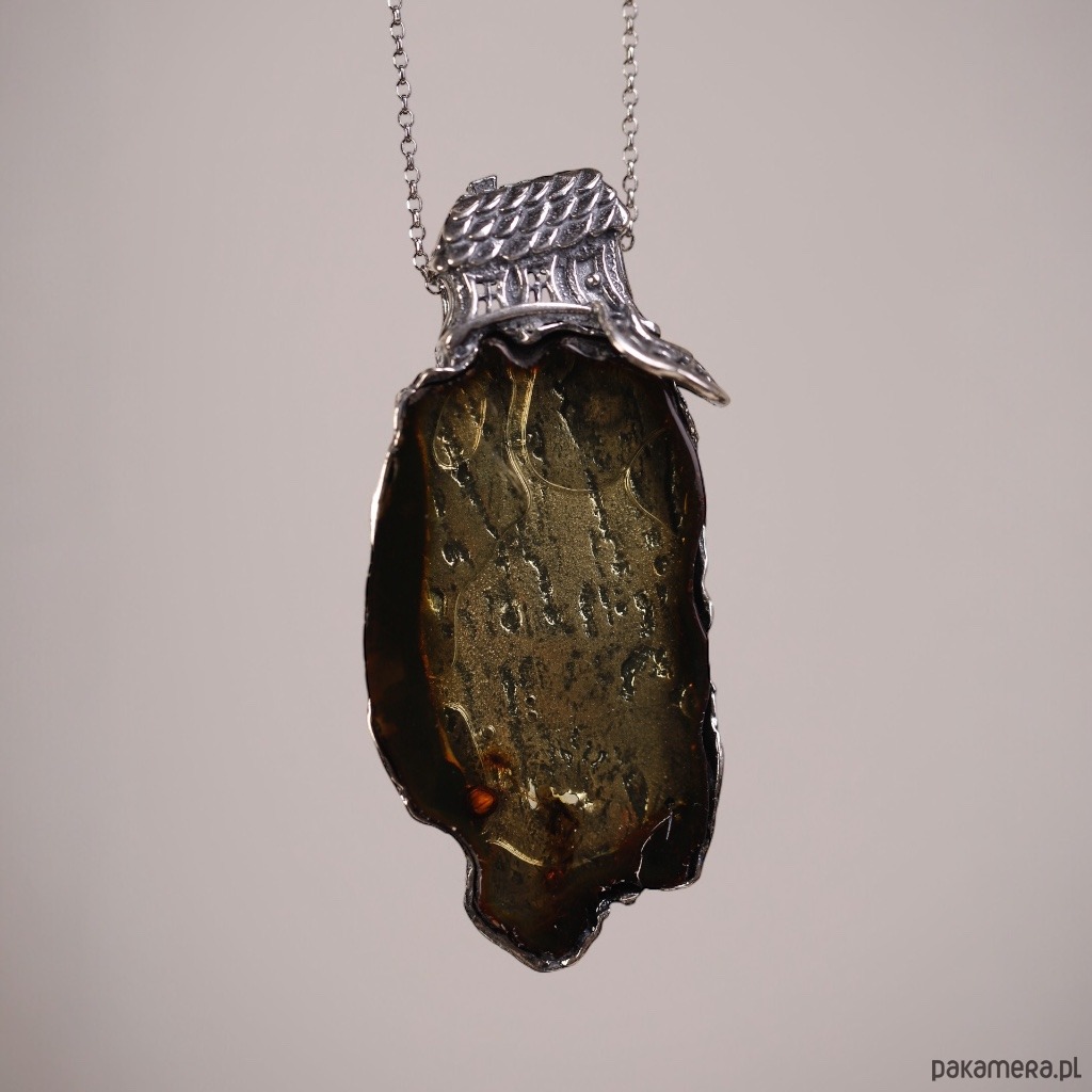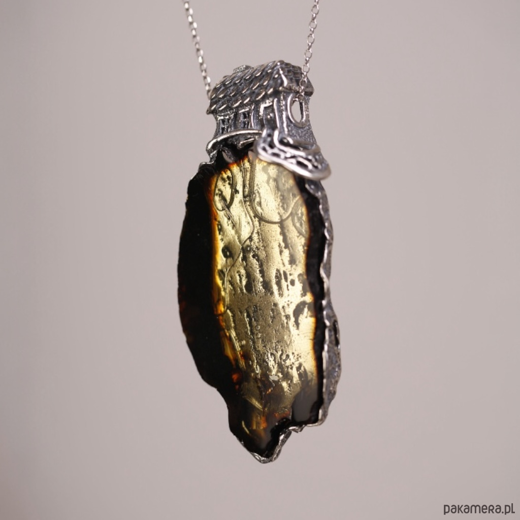 Wisiorek z bursztynem bałtyckim srebrny domek