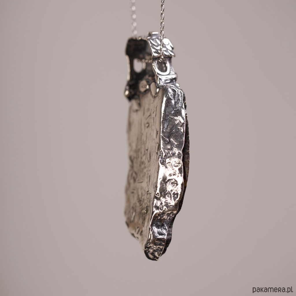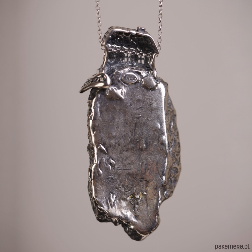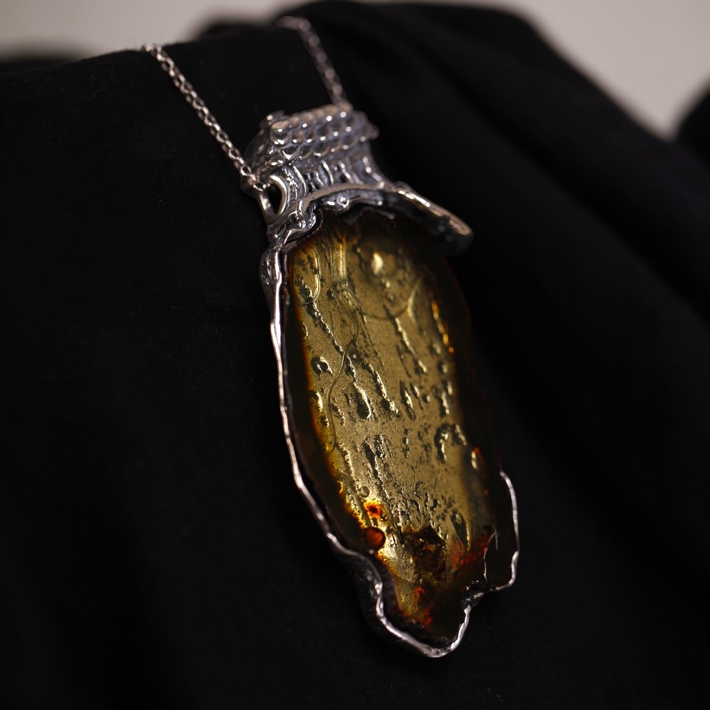 Wisiorek z motywem domku osadzonego na bursztynowym plastrze, który subtelnie mieni się złotymi refleksami. Surowa krawędź bursztynu ładnie kontrastuje z dopracowanym srebrem, tworząc prostą, ale bardzo charakterystyczną kompozycję. To dodatek, który od razu przyciąga wzrok, a jednocześnie pozostaje wygodny w codziennym noszeniu.