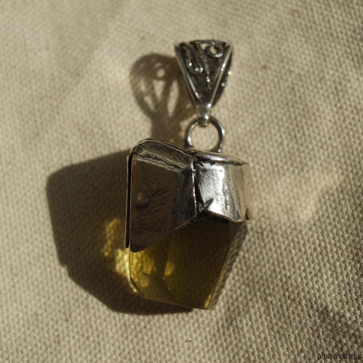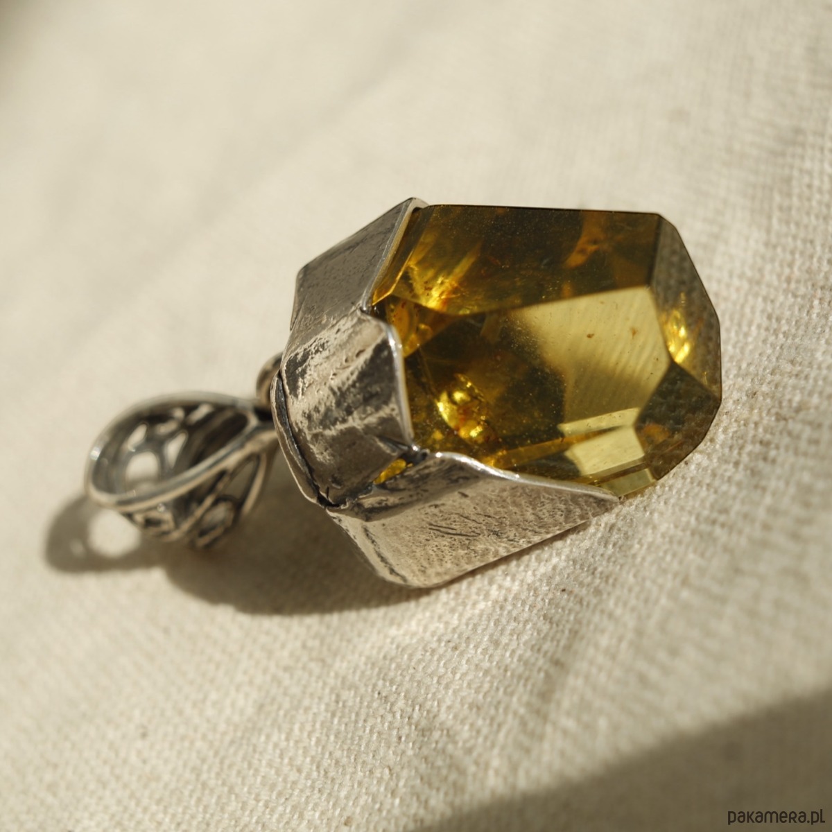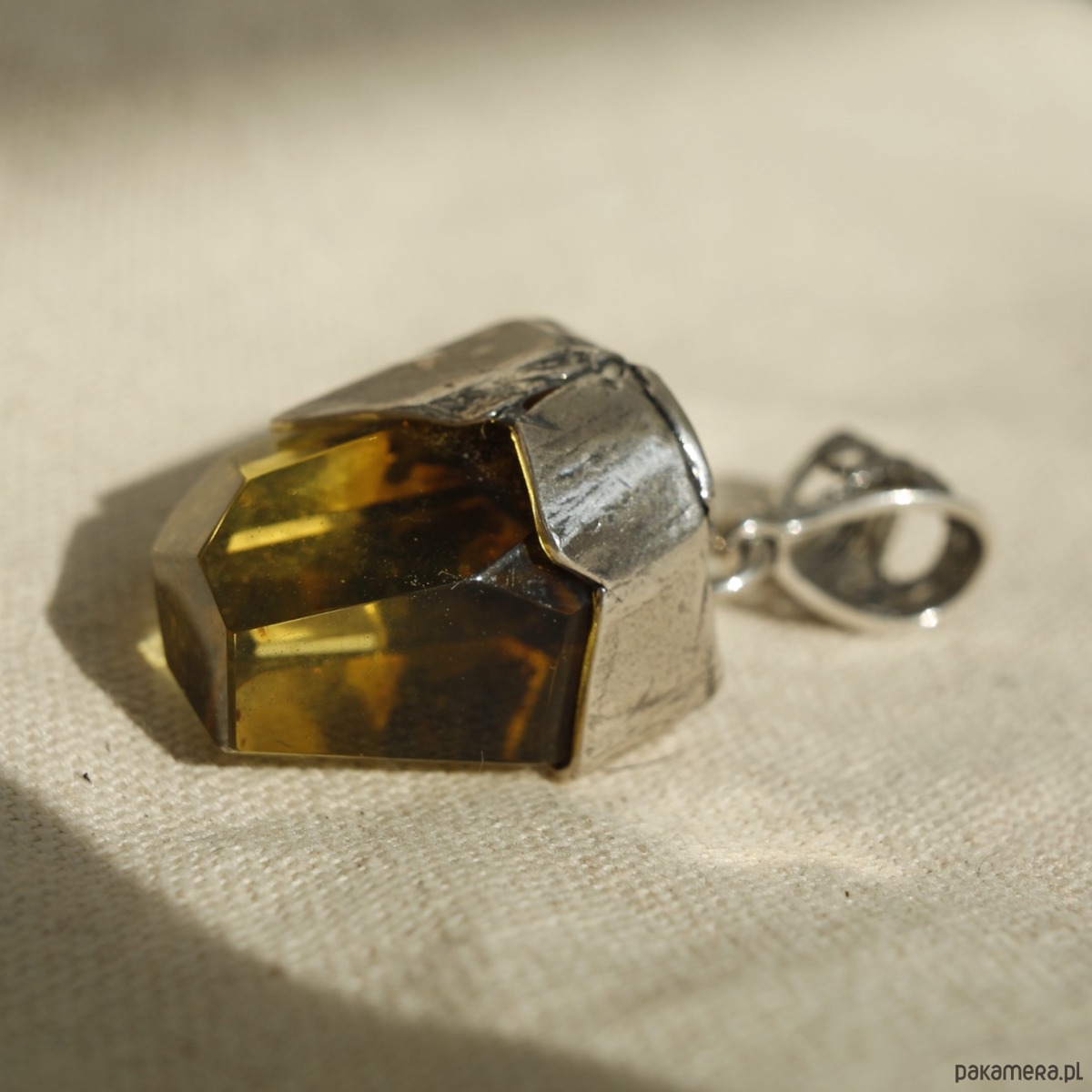 Wisiorek z zielonym, naturalnym bursztynem, który subtelnie mieni się w świetle, oprawiony ręcznie w srebro próby 925. Jego smukła forma sprawia, że jest eleganckim, ale nieprzytłaczającym dodatkiem - idealnym zarówno na co dzień, jak i do wyjątkowych stylizacji.