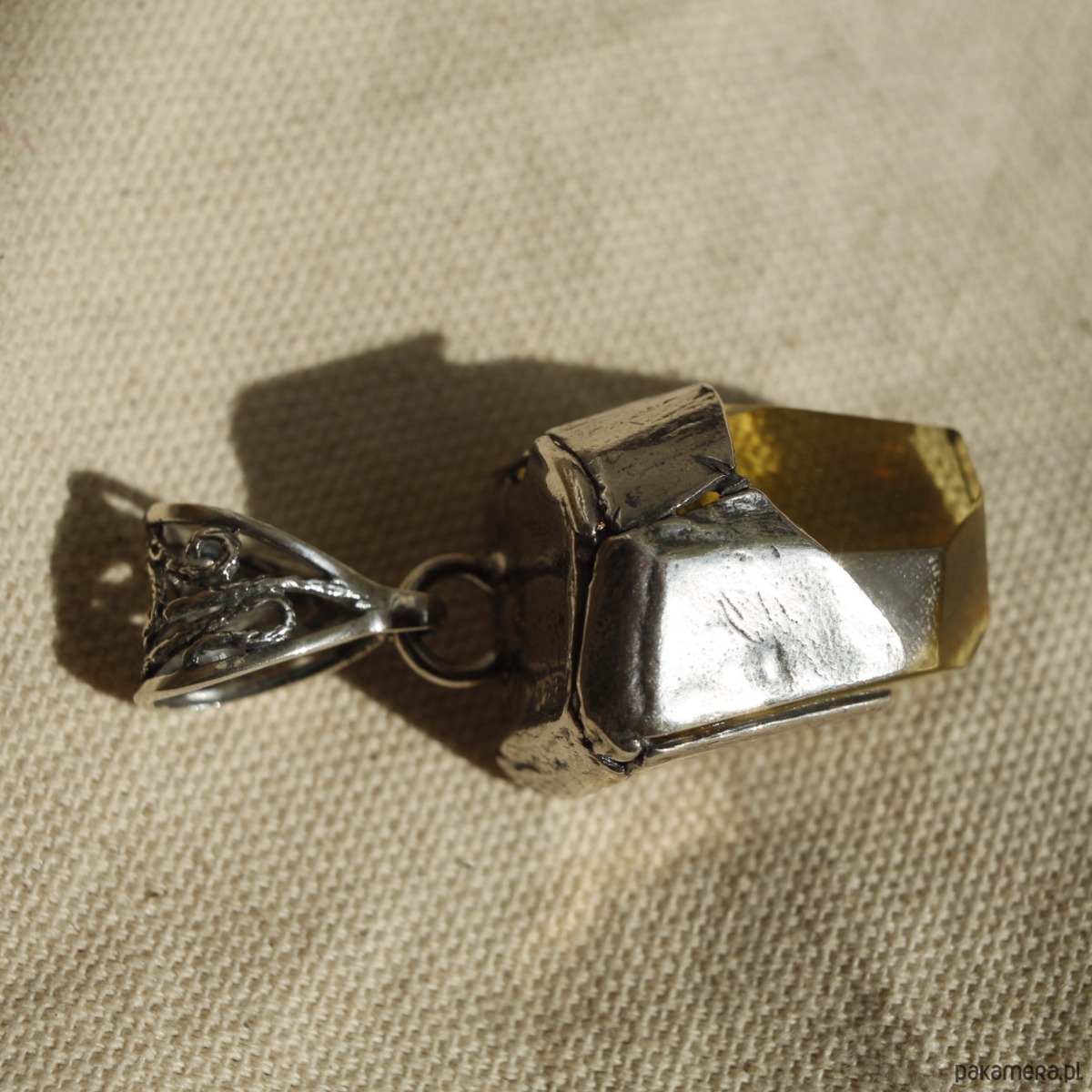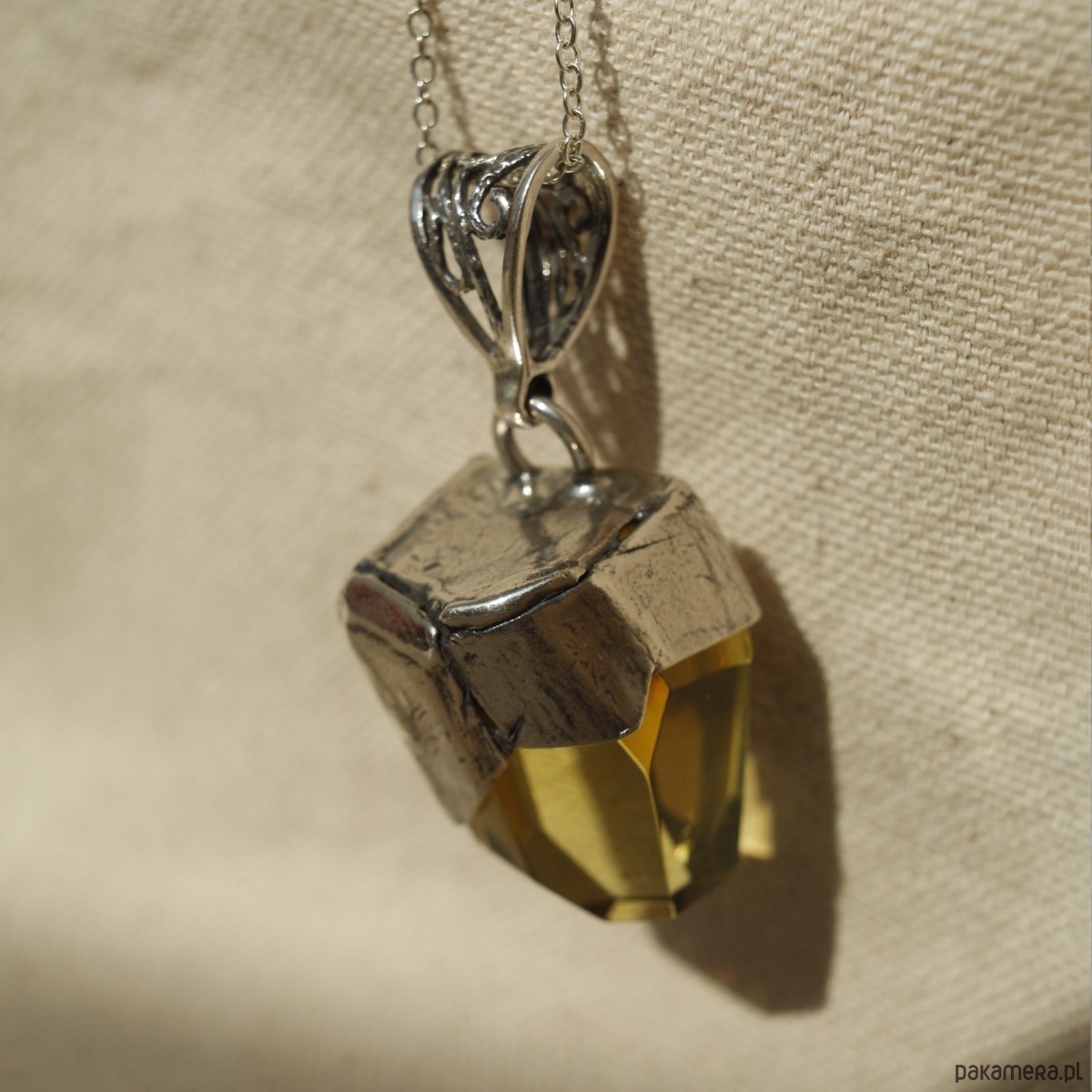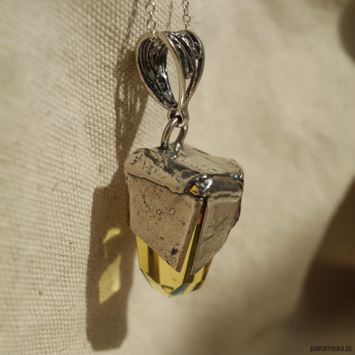 Wisiorek z zielonym, naturalnym bursztynem, który subtelnie mieni się w świetle, oprawiony ręcznie w srebro próby 925. Jego smukła forma sprawia, że jest eleganckim, ale nieprzytłaczającym dodatkiem - idealnym zarówno na co dzień, jak i do wyjątkowych stylizacji.