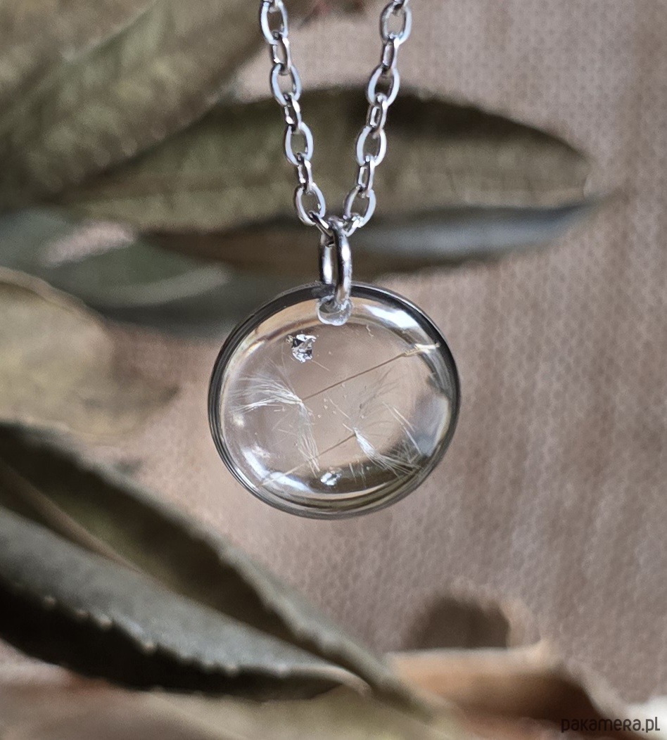 Oferuję Państwu unikalną biżuterię. Zawieszka jest wykonana z suszonych kwiatów i żywicy epoksydowej. Biżuteria jest wspaniałym i oryginalnym prezentem na lata.