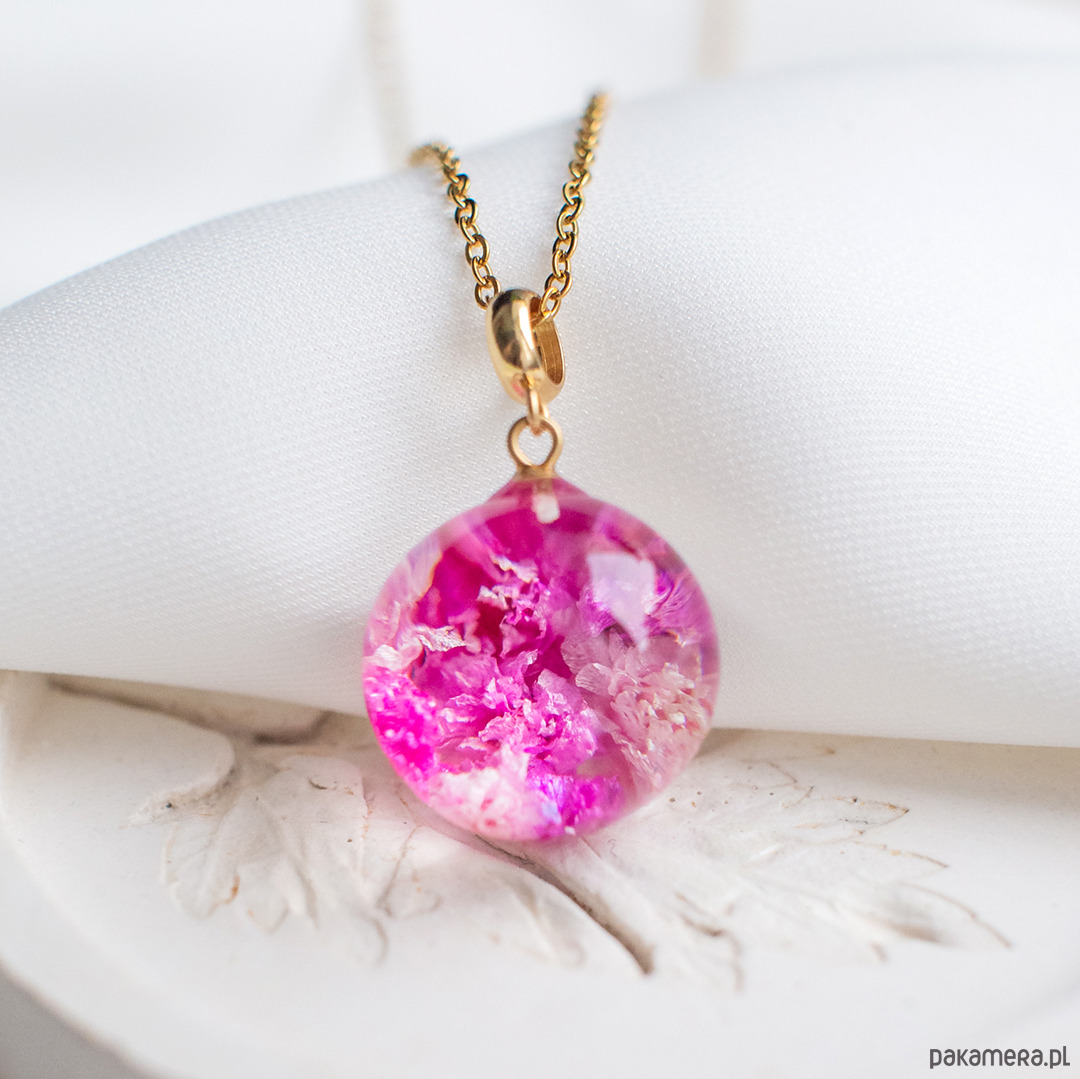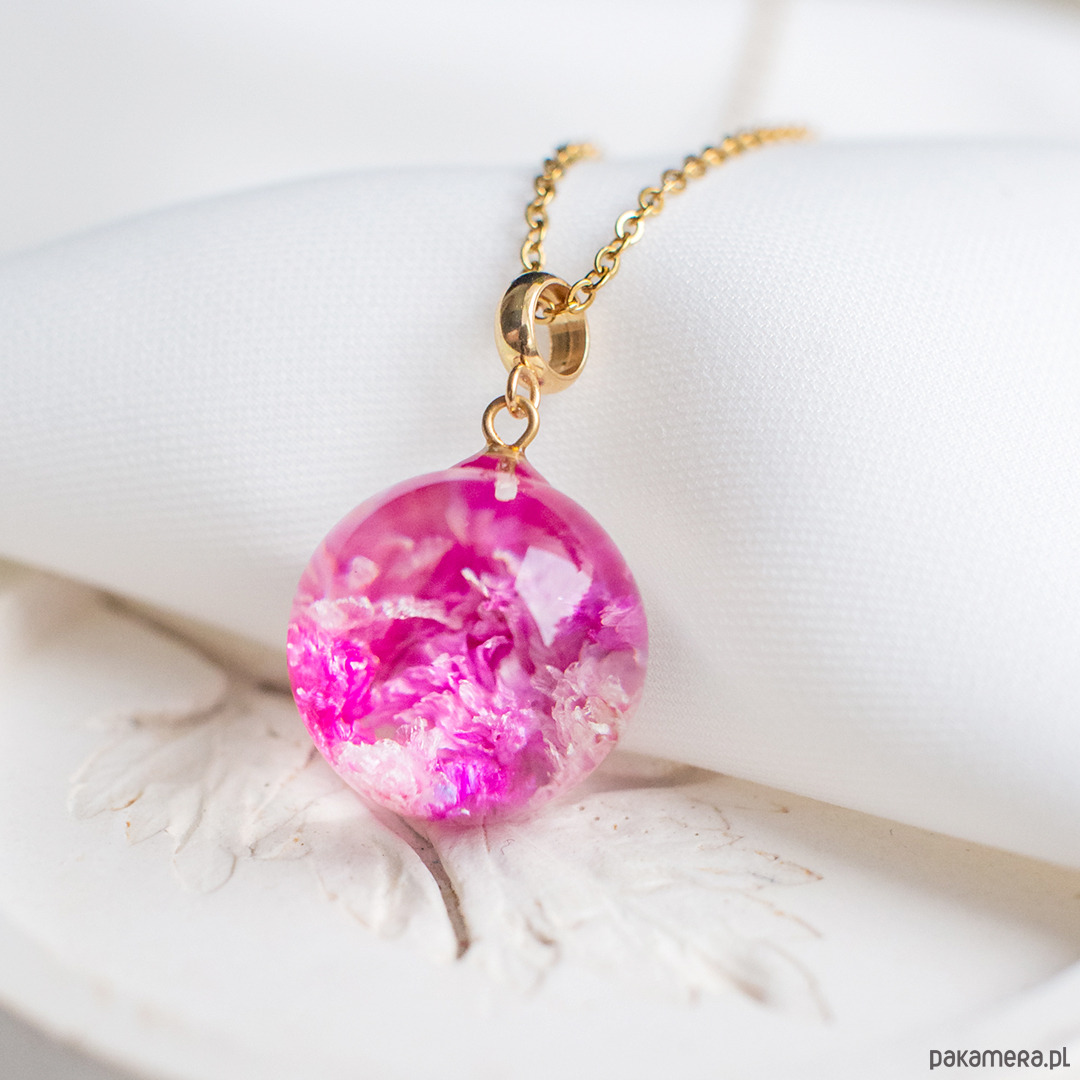 Wisiorek wykonany jest z żywicy epoksydowej z wykorzystaniem suszonych kwiatów. Metalowe elementy to stal nierdzewna szlachetna chirurgiczna.