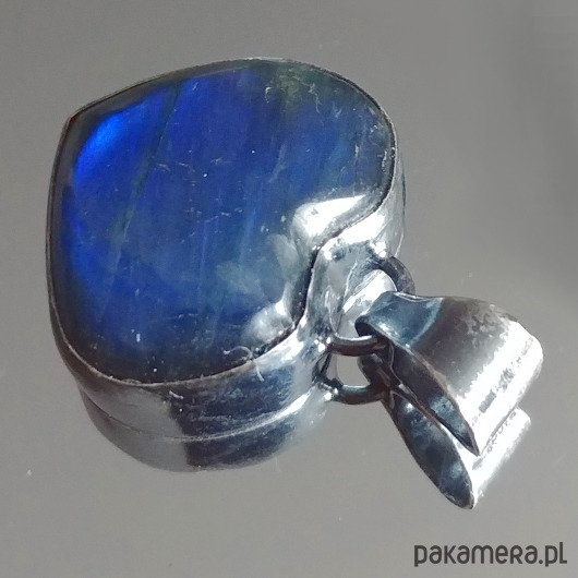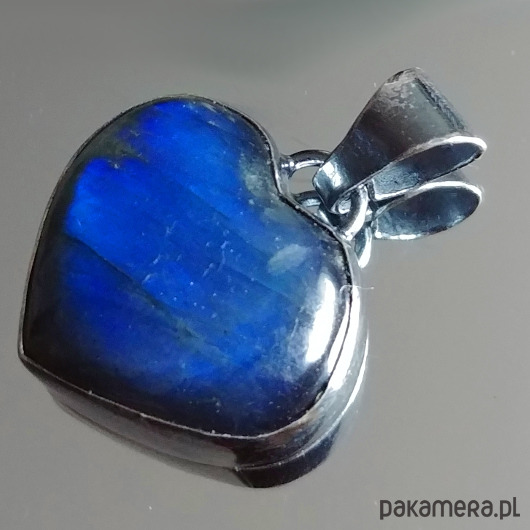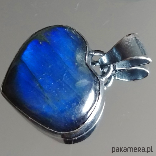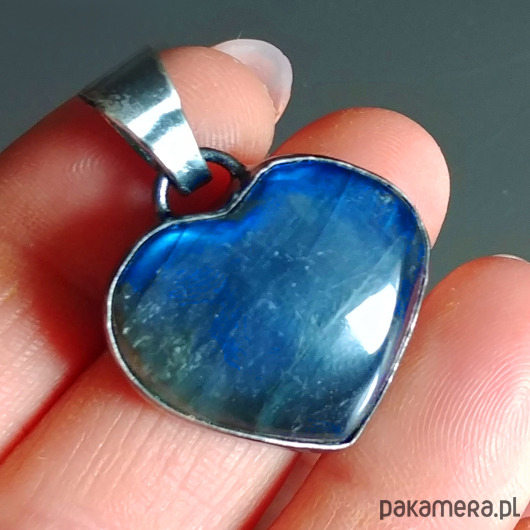 Subtelny, romantyczny wisior z oprawionym od podstaw własnoręcznie w oksydowane srebro próby 925 naturalnym labradorytem z taflą o pięknej, kobaltowej barwie i kształcie serca. Wymiary całej oprawy 25 x 22mm, długość max 35 mm, waga 11 g. Wisiorek zostanie zapakowany w ozdobne pudełeczko.