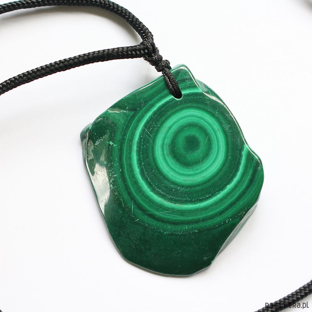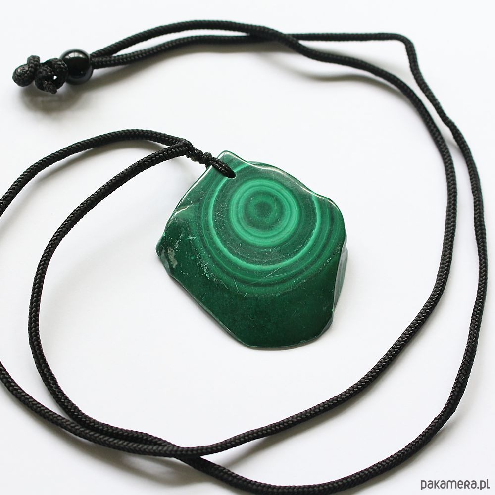 Energetyczny wisior z malachitem na czarnym sznurku z regulacją.