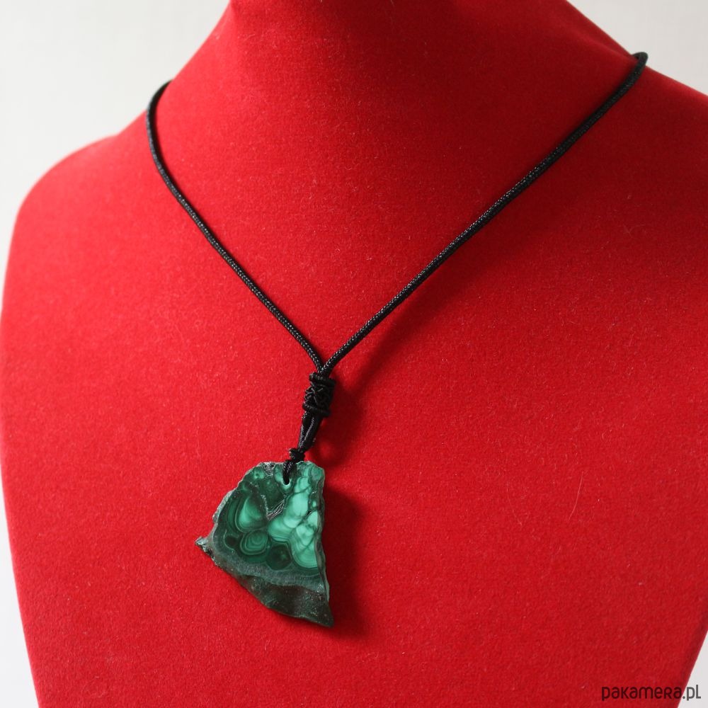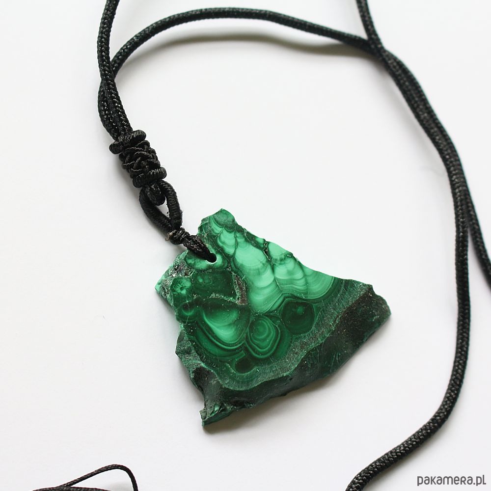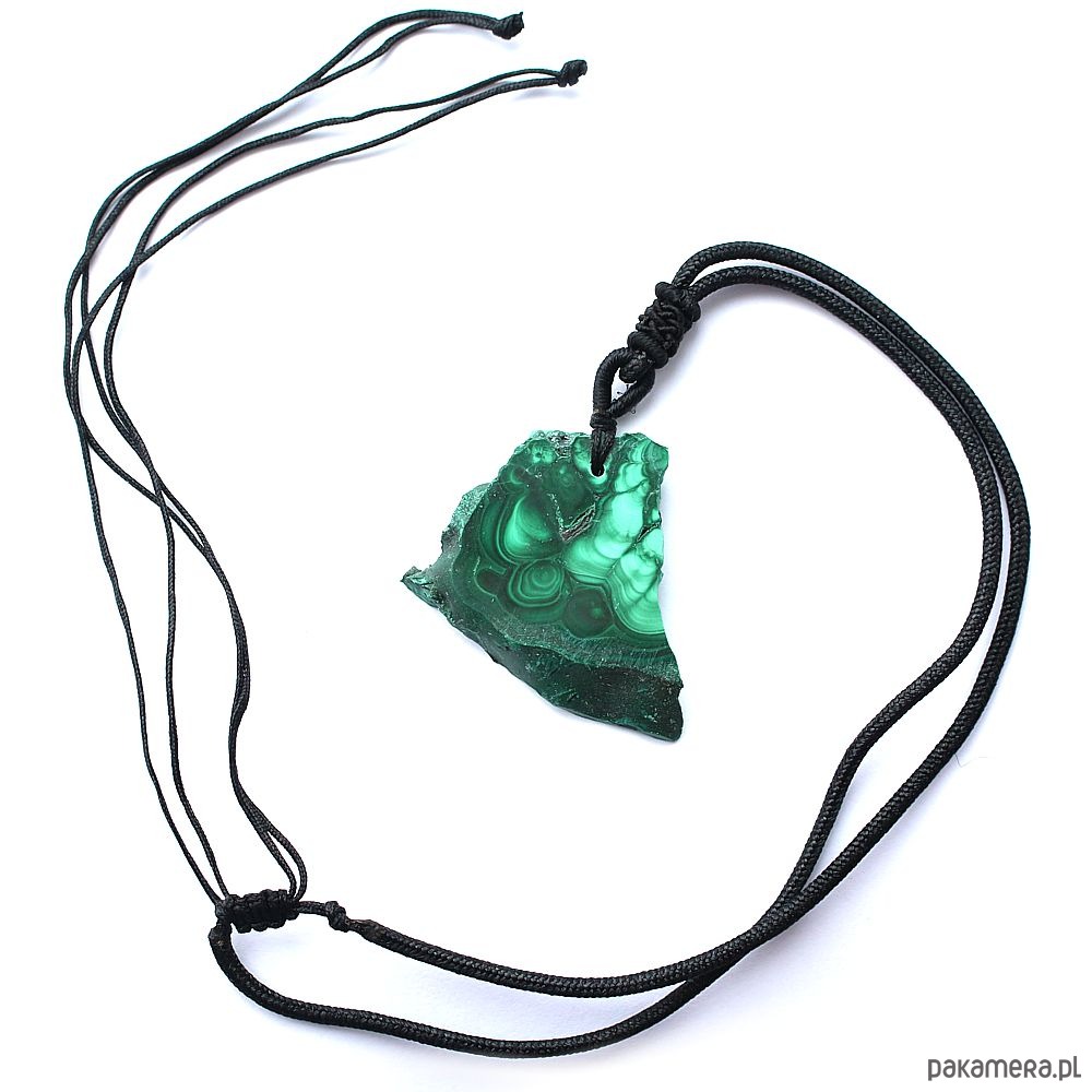 Energetyczny wisior z malachitem na czarnym sznurku z regulacją.