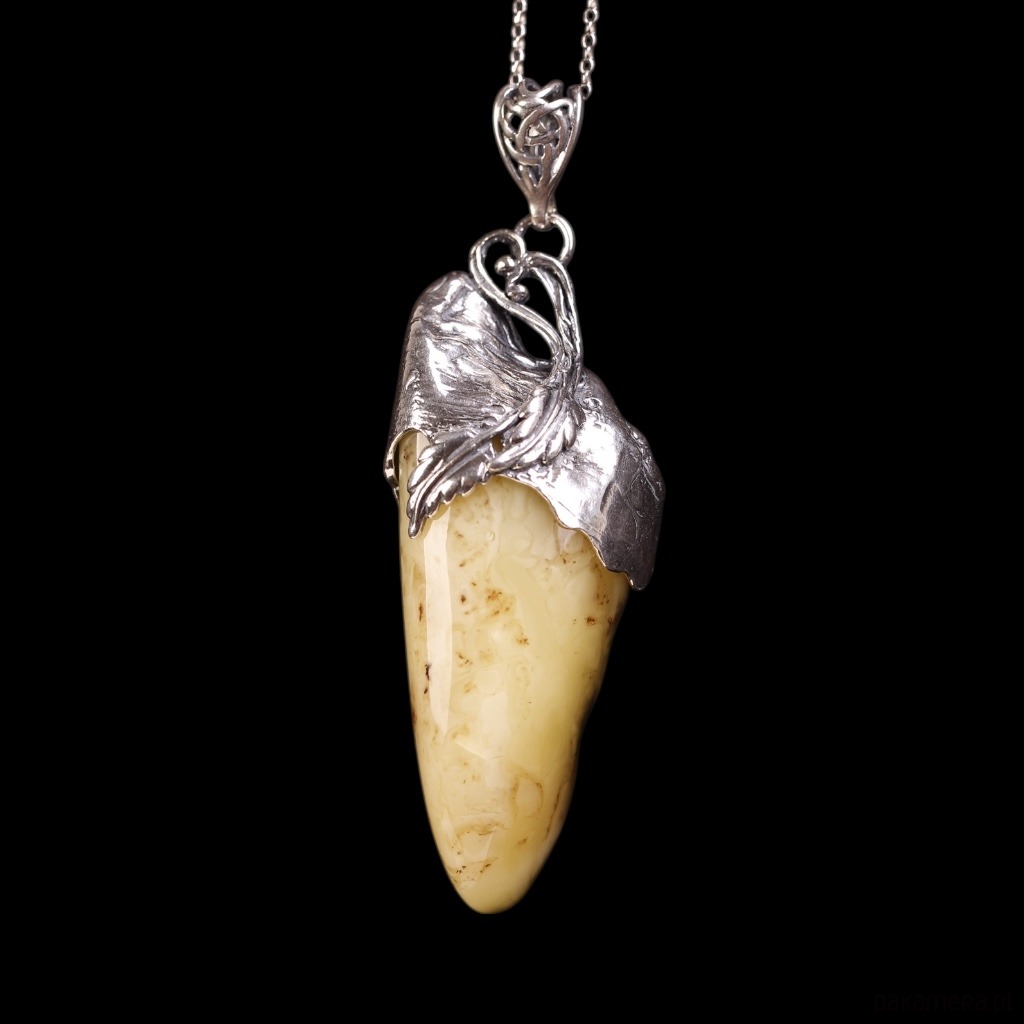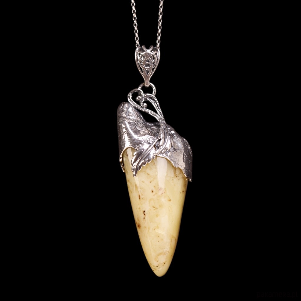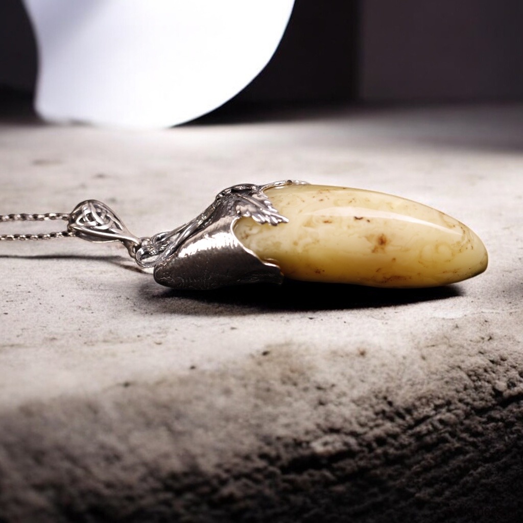 Wisiorek z mlecznym bursztynem bałtyckim