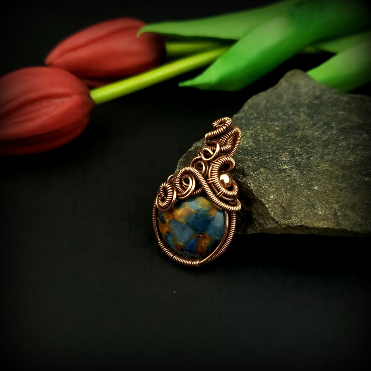 - Materiał: miedź, kamień naturalny