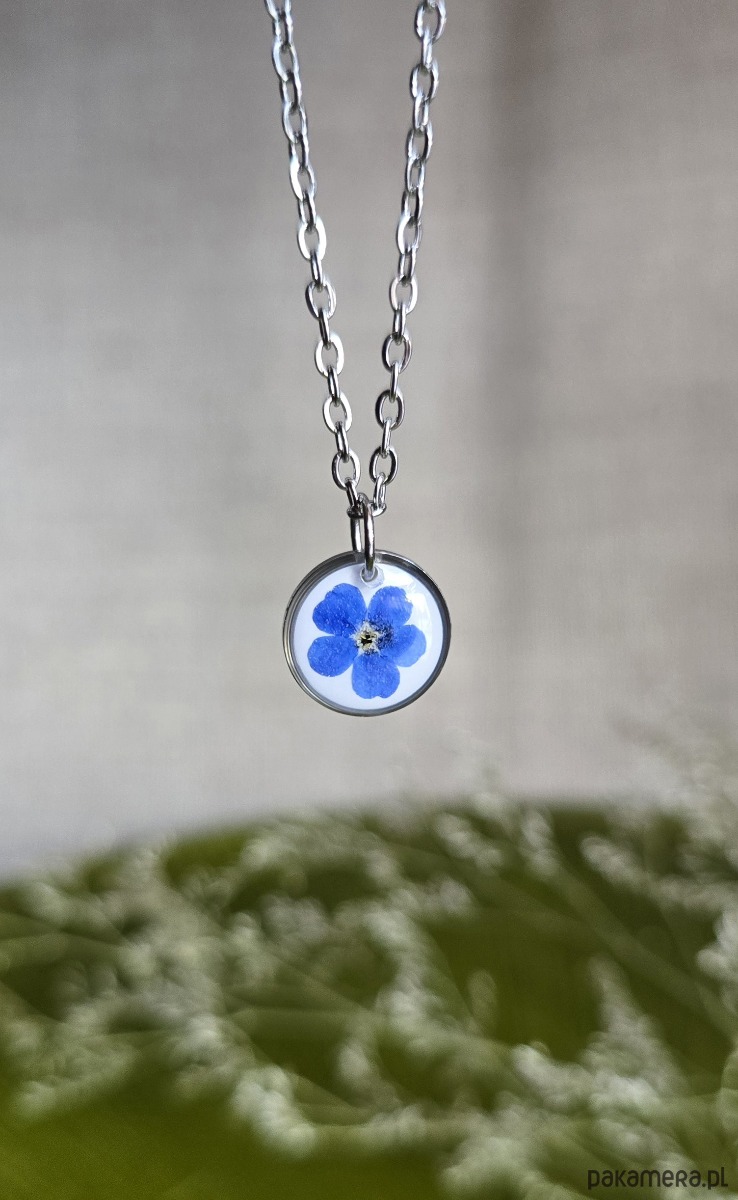 Oferuję Państwu unikalną biżuterię. Zawieszka jest wykonana z suszonych kwiatów i żywicy epoksydowej. Biżuteria jest wspaniałym i oryginalnym prezentem na lata.