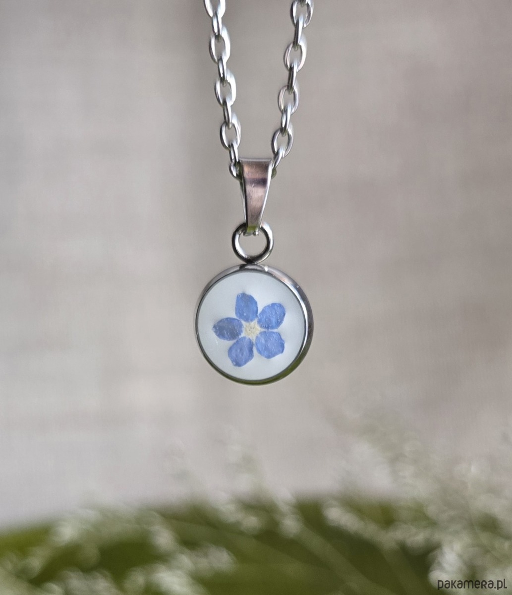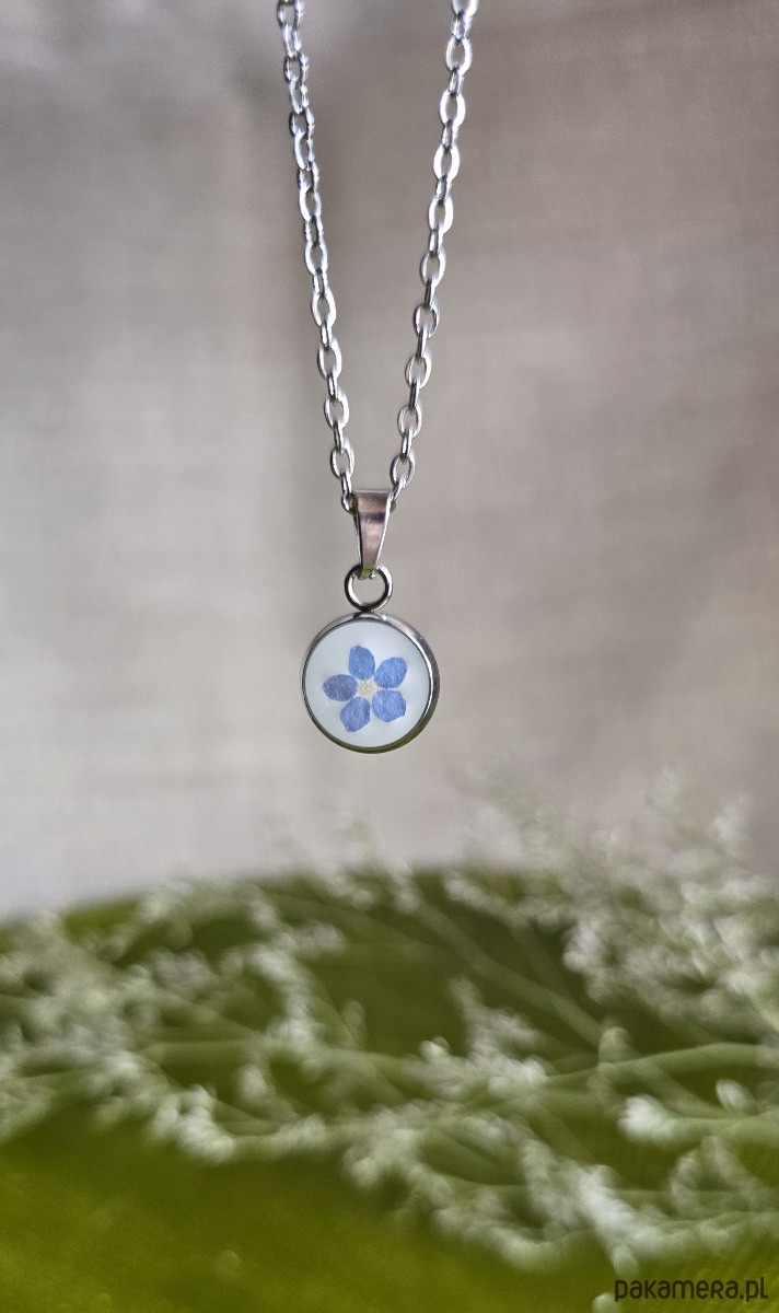 Oferuję Państwu unikalną biżuterię. Zawieszka jest wykonana z suszonych kwiatów i żywicy epoksydowej. Biżuteria jest wspaniałym i oryginalnym prezentem na lata.