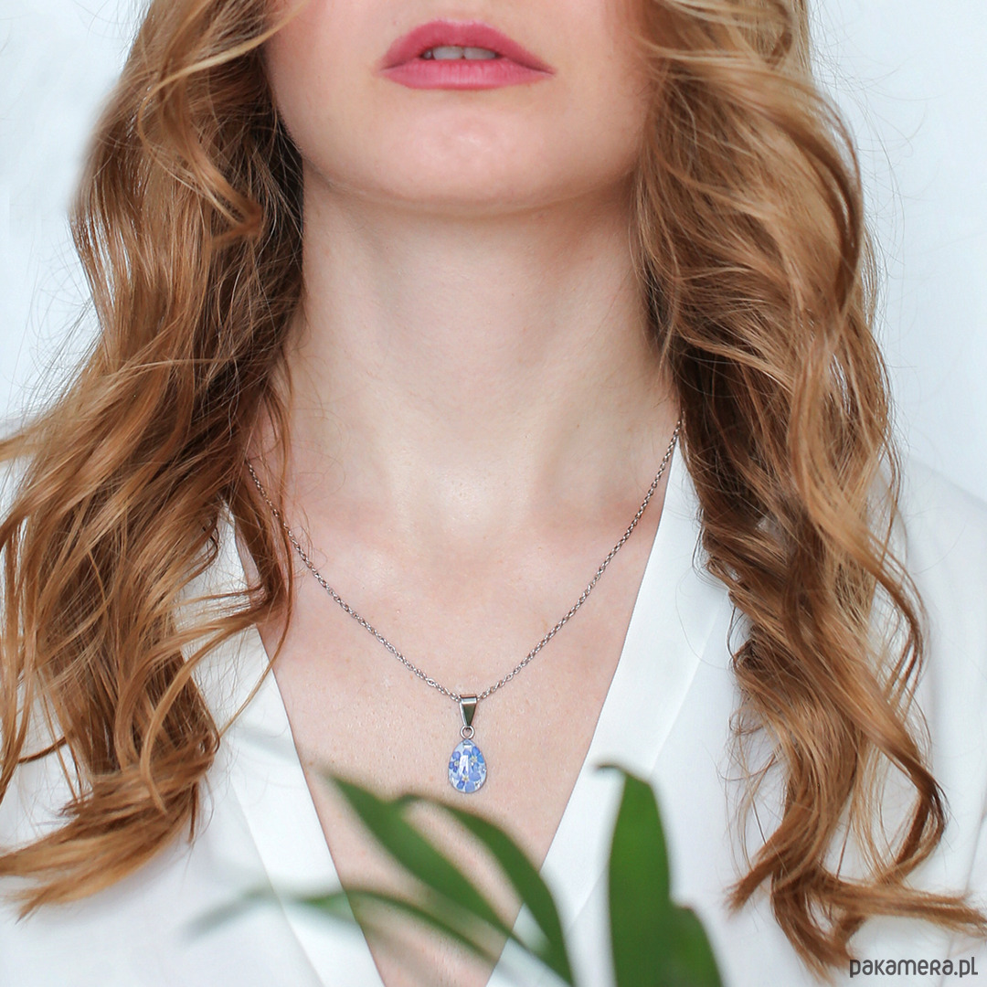 Wisiorek wykonany jest z żywicy epoksydowej z wykorzystaniem suszonych kwiatów. Metalowe elementy to stal nierdzewna szlachetna chirurgiczna.