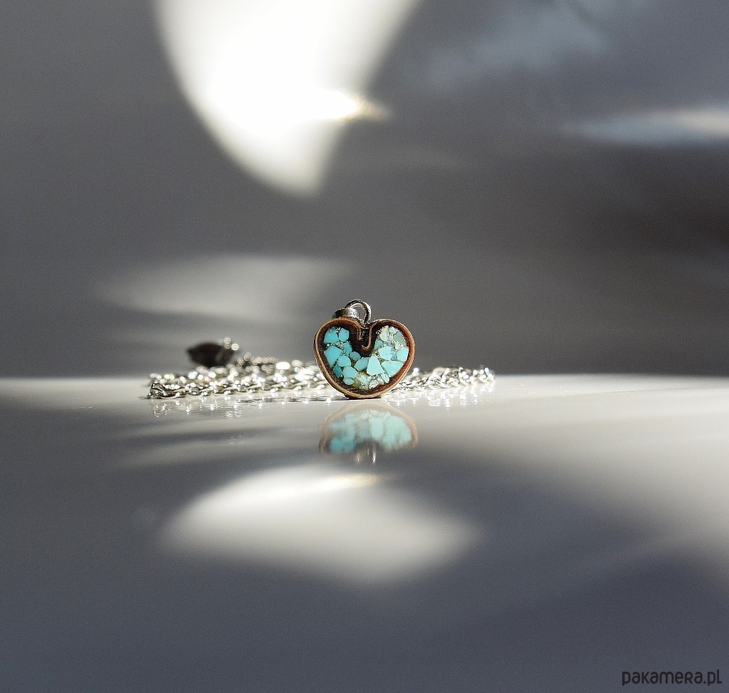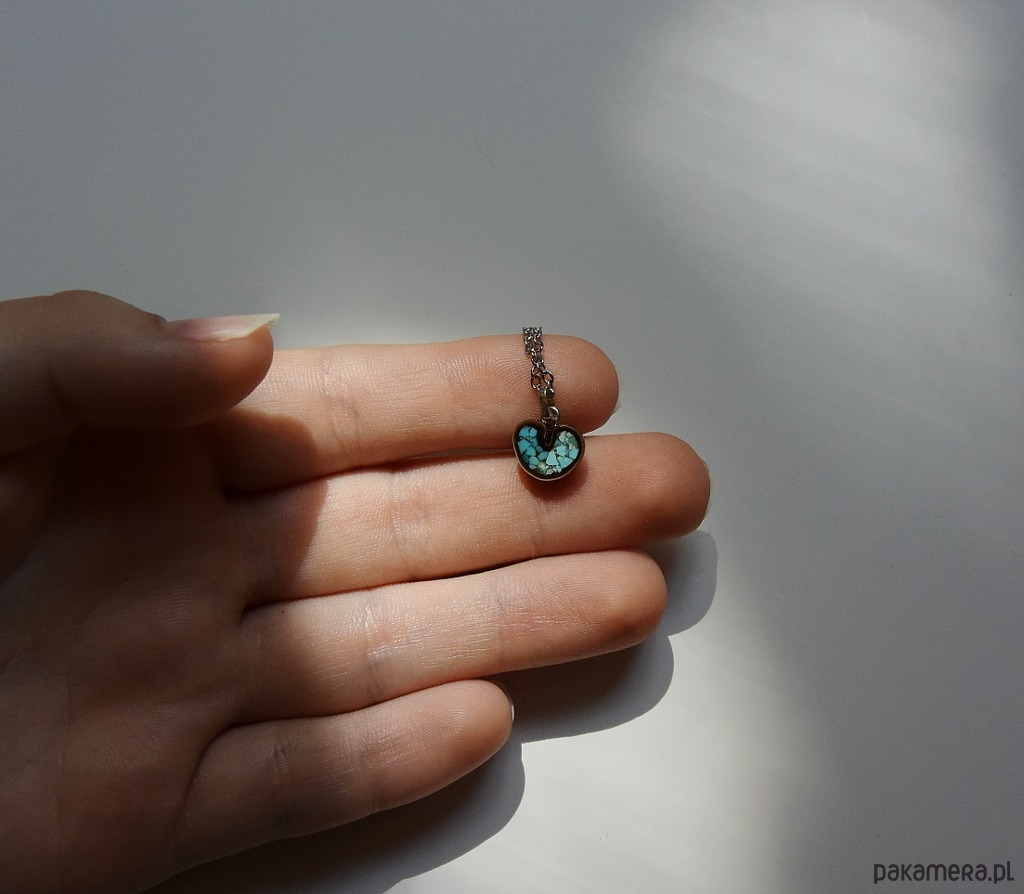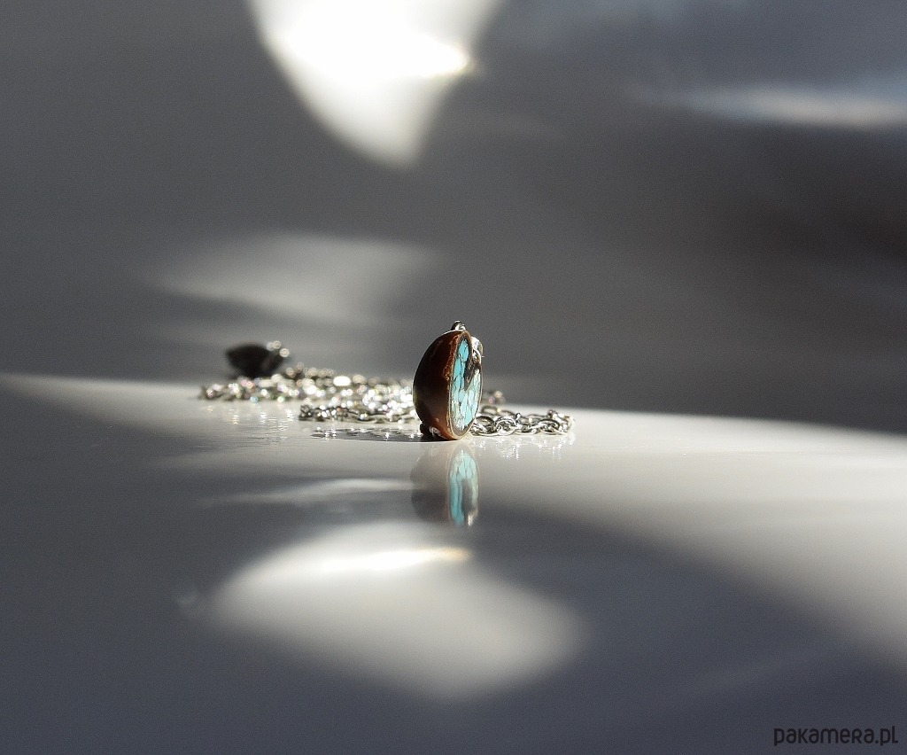 Malutki wisiorek wykonany został z pestki baobabu oraz inkrustacji z turkusu. Jest to prawdziwa pestka z drzewa baobabu w której umieściłam metodą inkrustacji pokruszony turkus (pokazane na zdjęciach). Wisiorek zawieszony jest na łańcuszku ze stali chirurgicznej, więc nie powoduje uczuleń, ani nie ciemnieje.