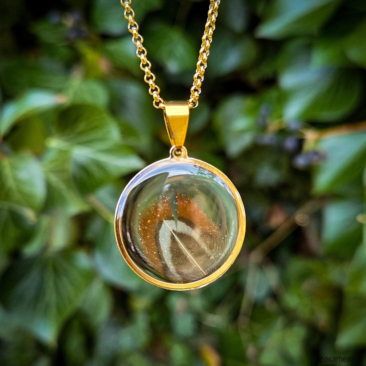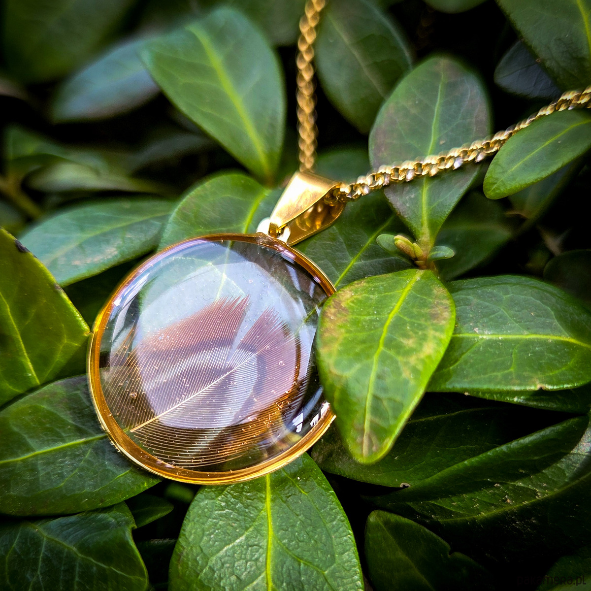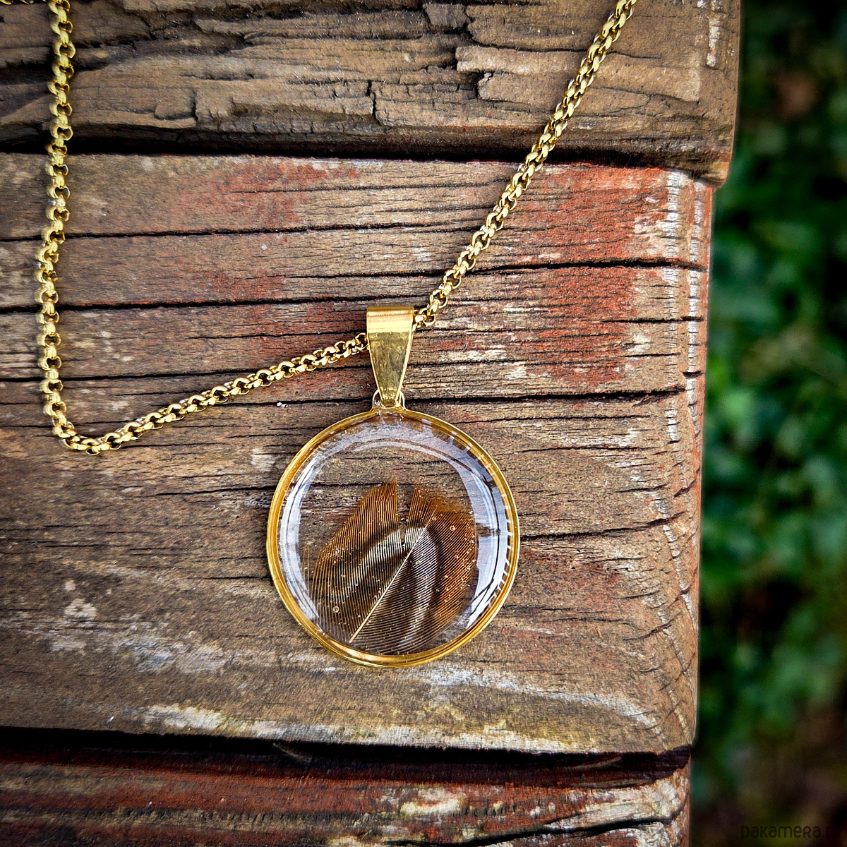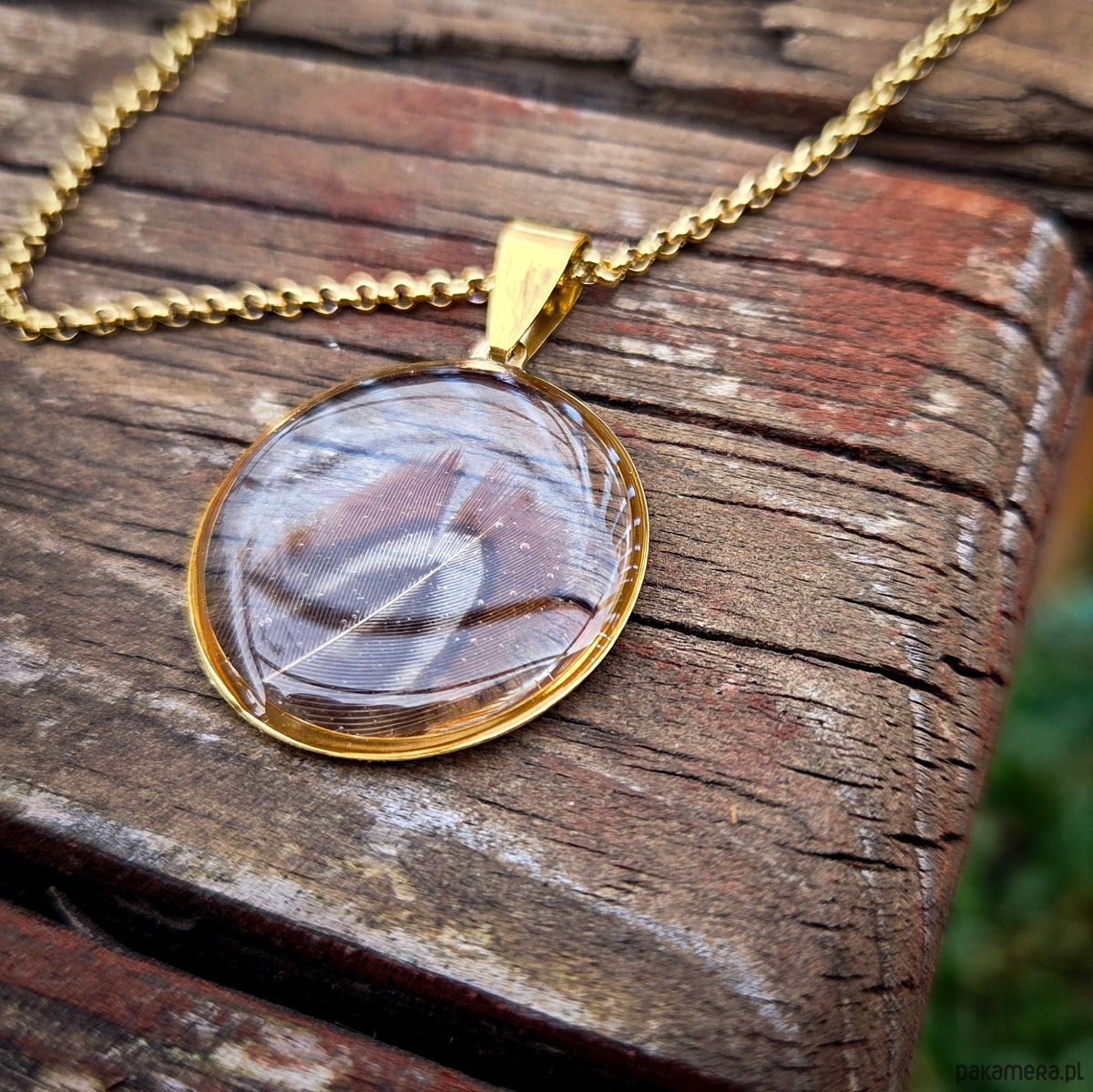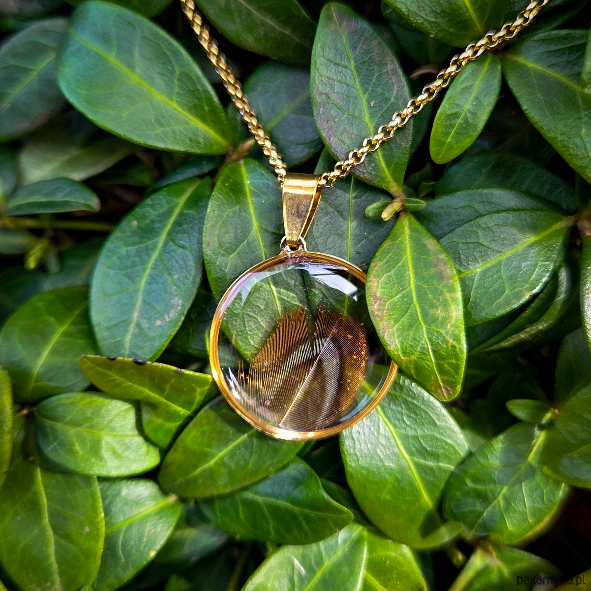Zawieszka z zatopionym w żywicy epoksydowej piórkiem.