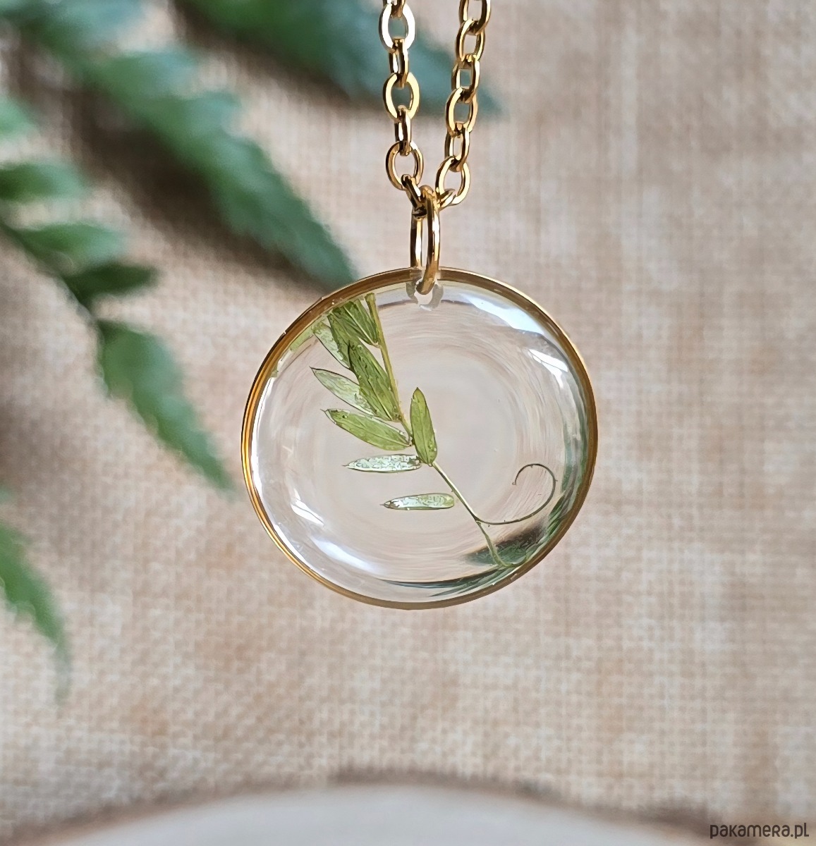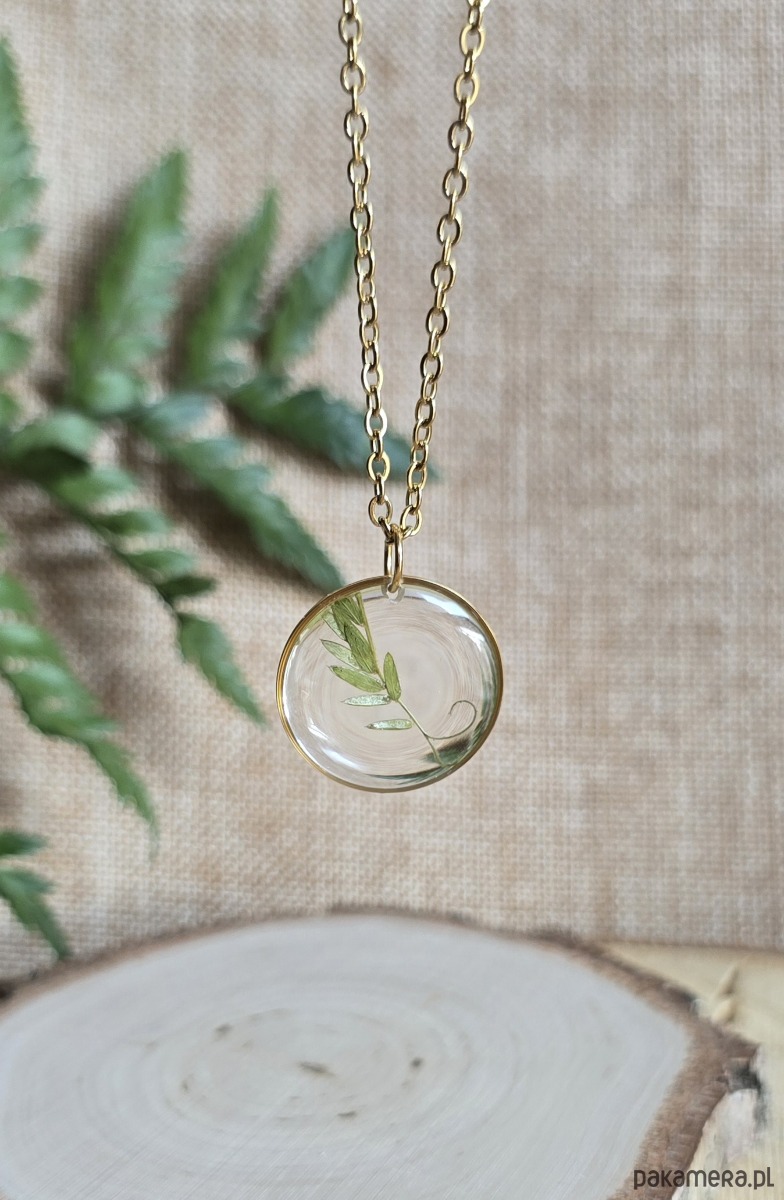 Wisiorek z rośliną prawdziwa roślina złoty naszyjnik